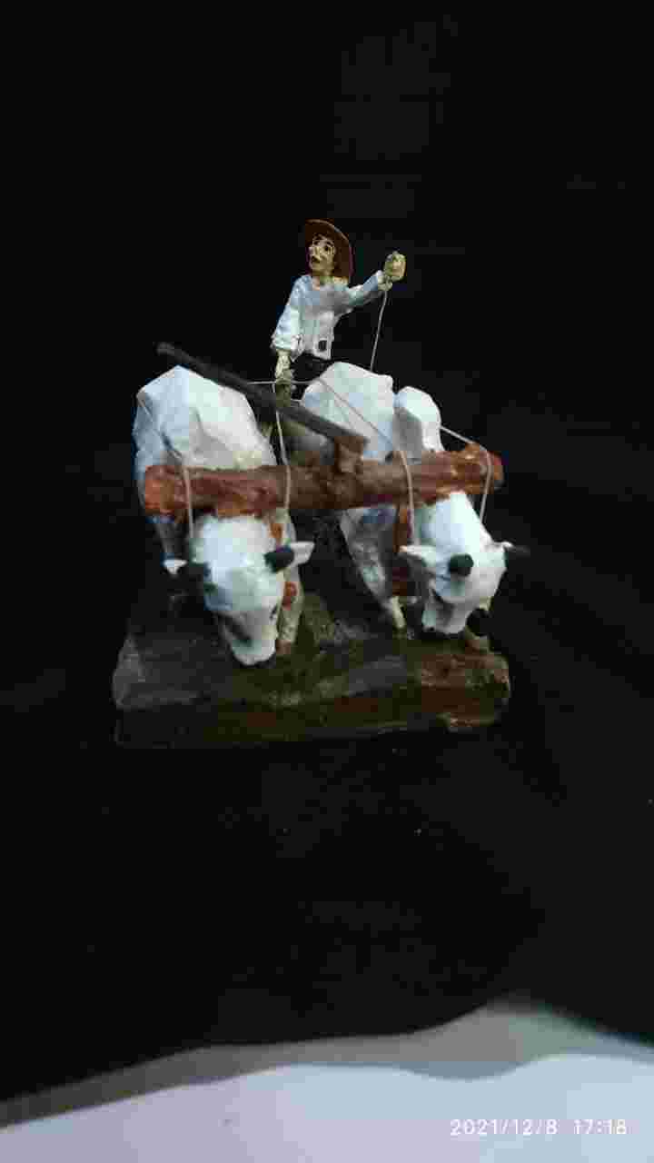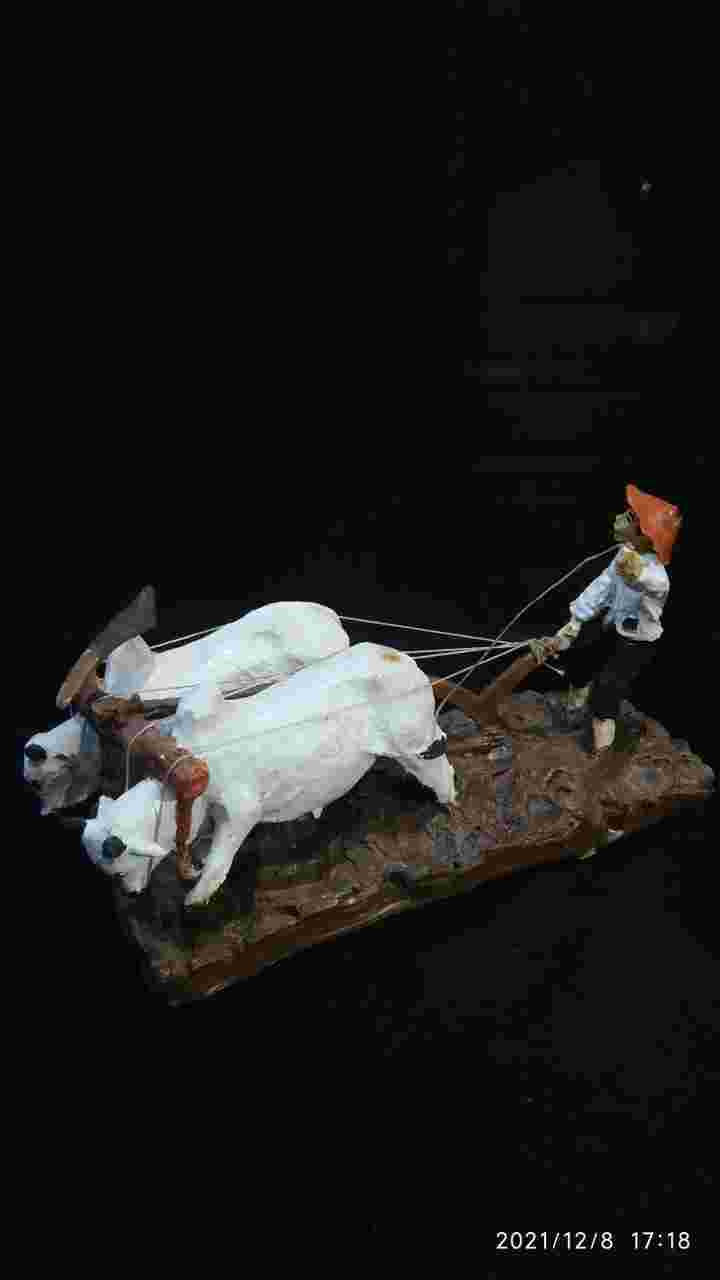Miniatur pajangan petani dan sapi Panjang 21cm Tinggi 17cm Utuuh mulus Bahan resin