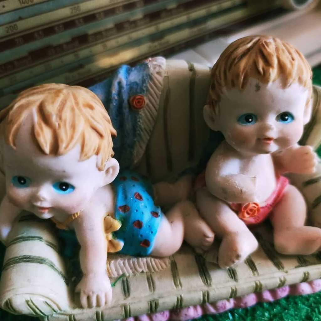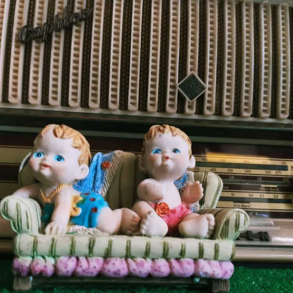 Patung baby berdua duduk SofaBahan ResinKondisi Baik