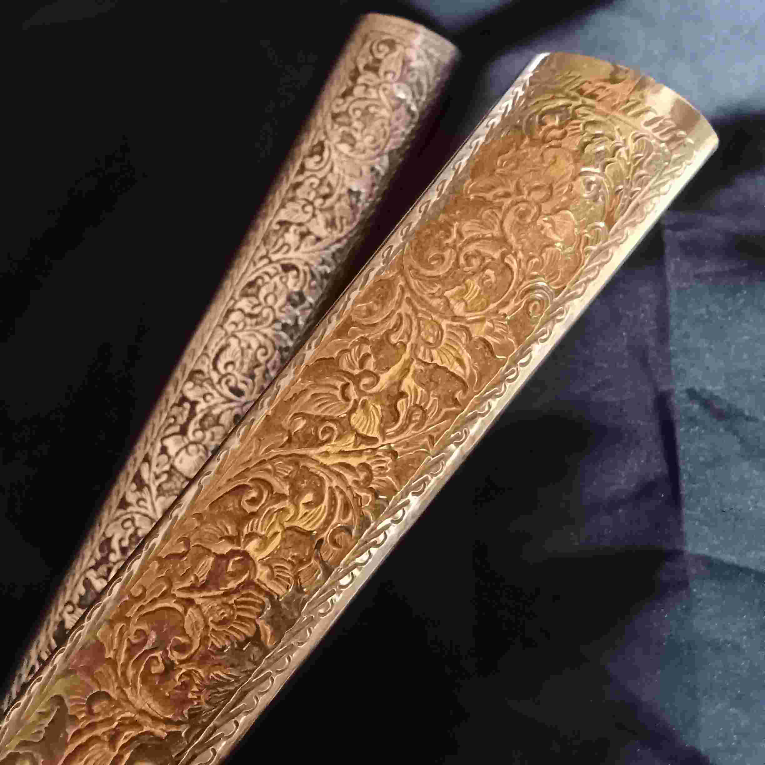 Dibuat dengan teknik garap yang cermat dan teliti, pendok ini memiliki tampilan mengagumkan yang dapat menambahkan kesan elegan pada ker ris Anda. Dilengkapi dengan patrem cantik pada bagian atasnya membuat pendok ini menjadi lebih menarik.