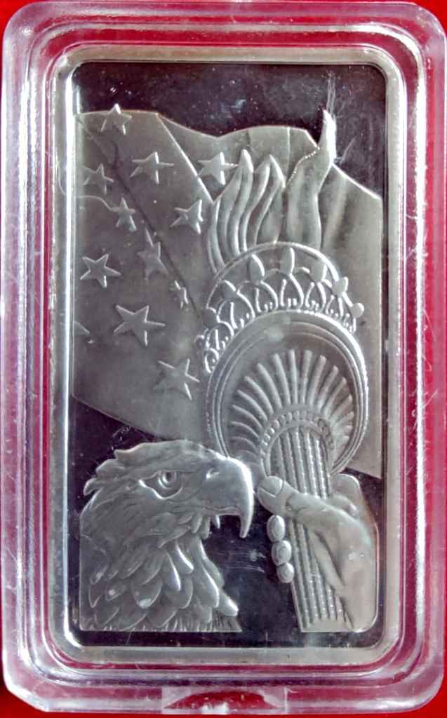 Tampak belakang bergambarkan: lambang Elang America & Obor Liberty.