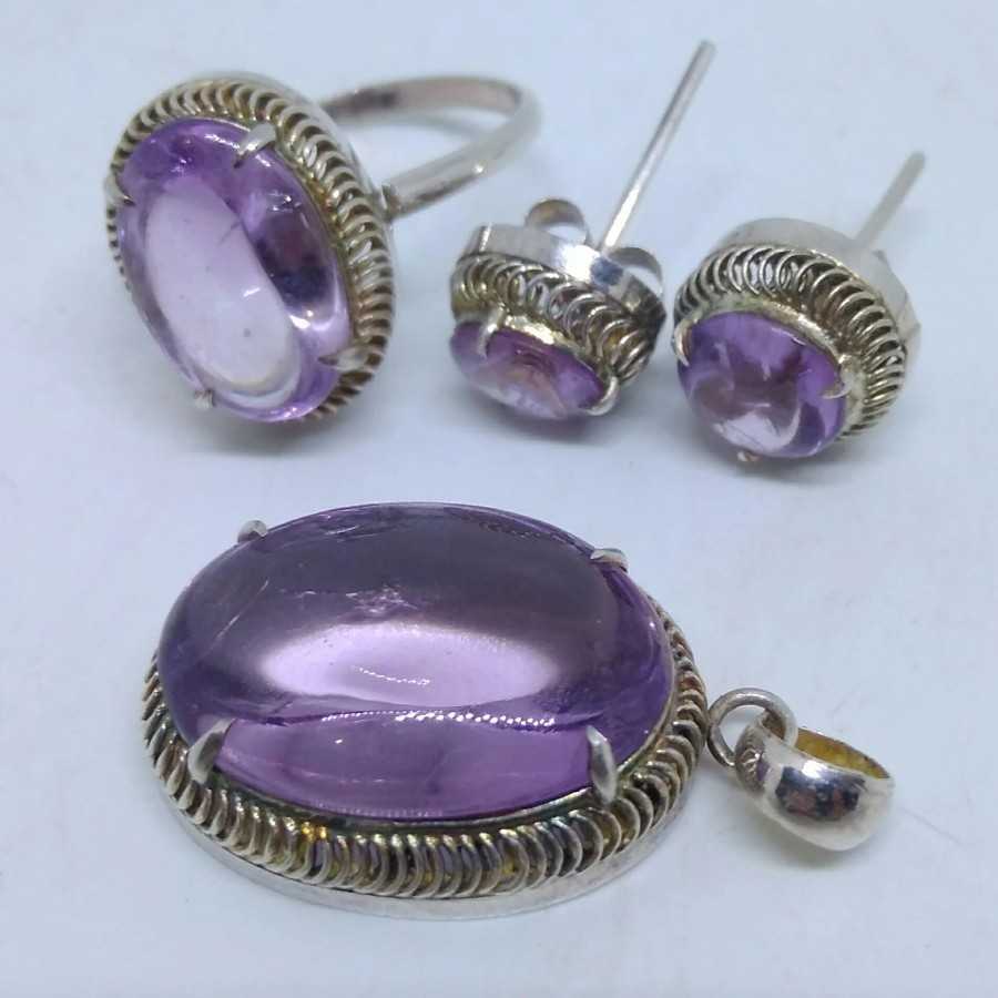 Perhiasanbahan peraknama Batu Kecubungsatu Set Anting,Cincin dan Liontin