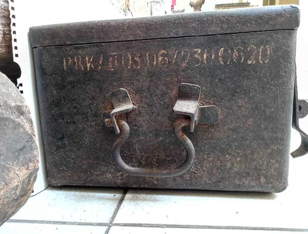 Peti besi antik.Size: T.21,5 P.43 L.31.Material: besi.Periode: 1930-1950.