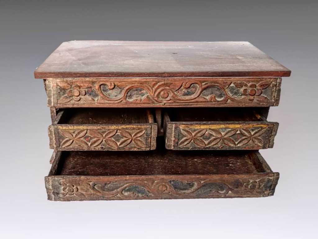 Peti ukir kuno.Material: kayu jati.Ukuran: 36*13*16 cm.