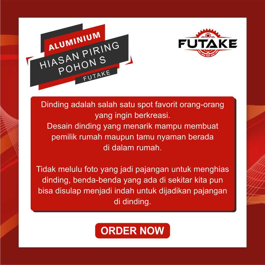 Futake menghadirkan hiasan model piring ornamen motif Pohon dengan material pilihan yang berkualitas. Aluminium menjadi pilihan karena daya tahan terhadap karat dan ringan. Proses Finishing yang teliti membuat permukaan piring ini halus dan berkesan premium.