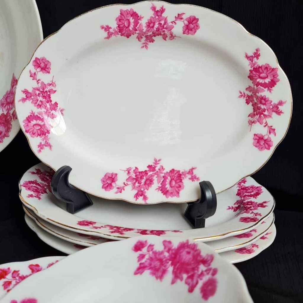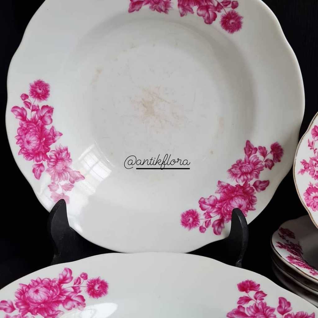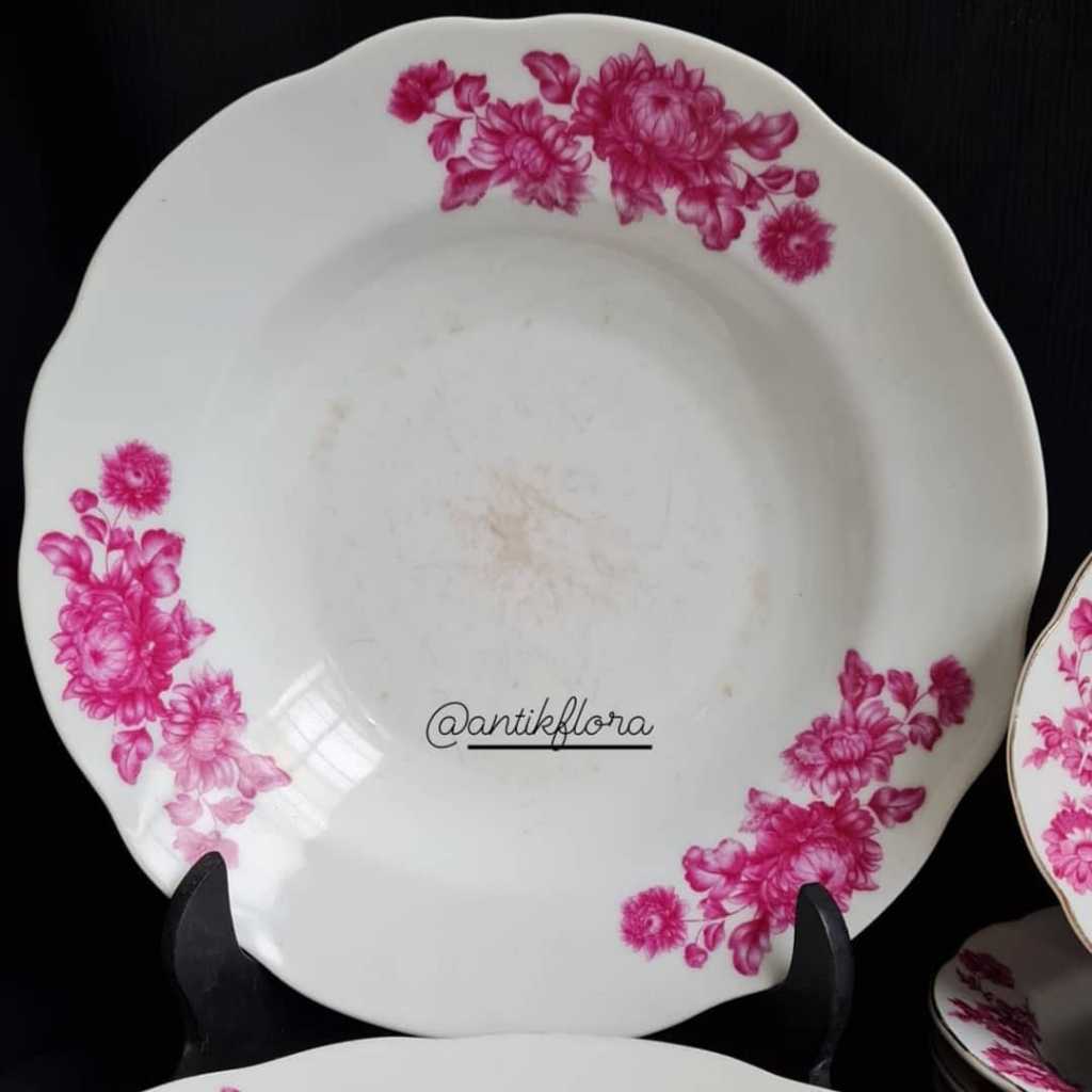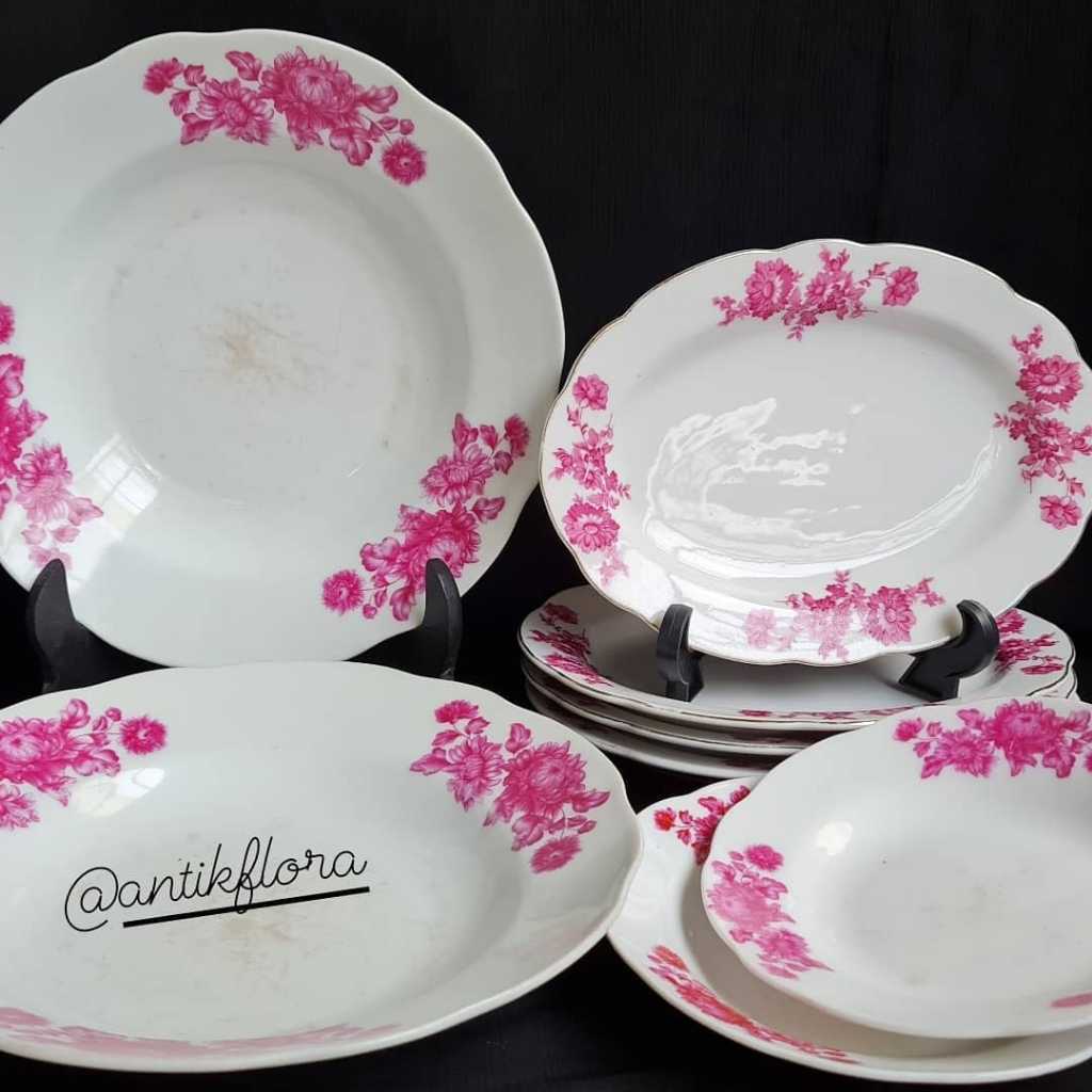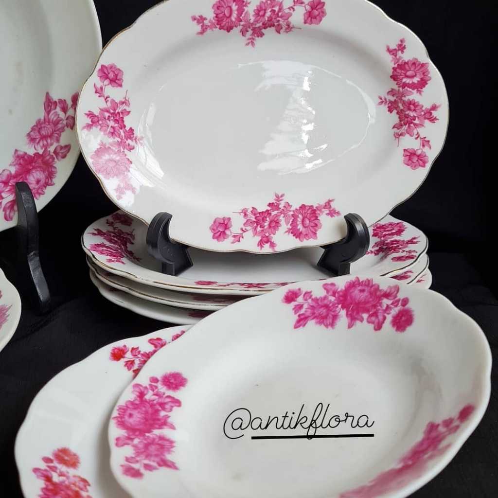 Piring Bunga Kekwa MerahGoodCondition, Made in china———————--—————2 pc Piring makan 23cm4 pc piring kue oval 21cm2 pc lepek kecil 16cm