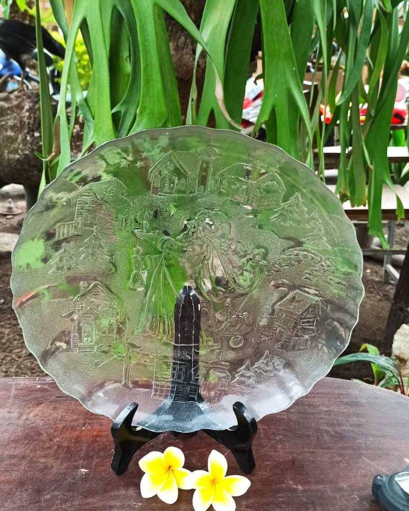 Barang Antik Sepasang Vas Kristal Eropa Hijau Tua Utuh Mulus Jadul Kuno