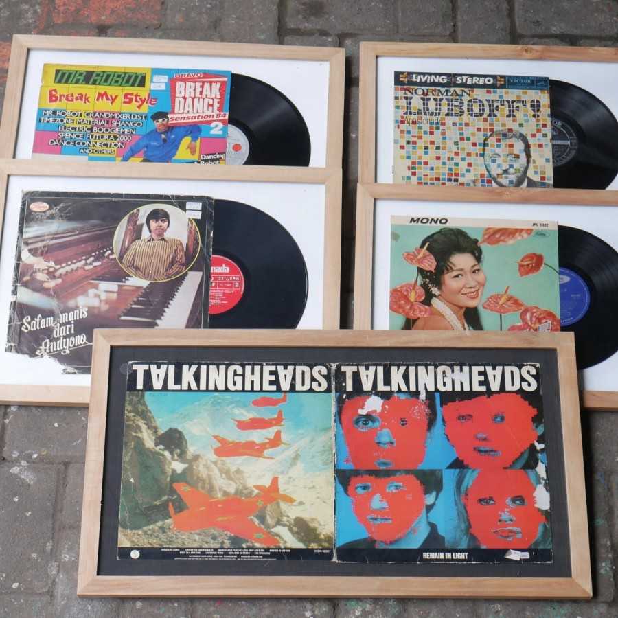 hiasan dinding dari piringan hitam original lawas yg di bingkai. tidak bisa pilih gambar, grup band, atau penyanyinya. dikirim random sesuai stok piringan hitam yg kami miliki. ukuran 37x50cm. piringan hitam 12inci