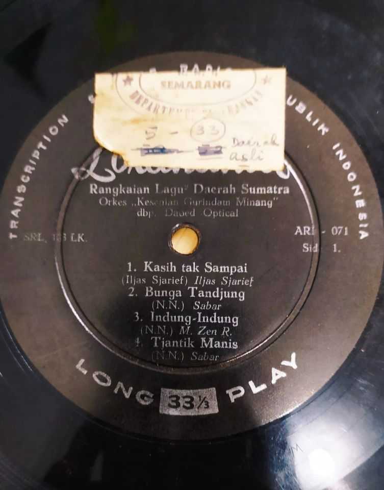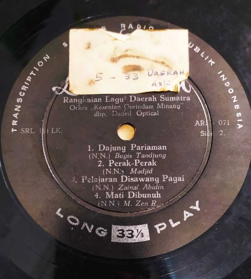 Piringan Hitam Rangkaian Lagu2 Sumatera - Kesenian Gurindam Minang