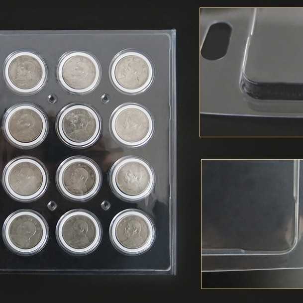 Refill transparan keras PET 281 x 235mm 12 lubang kapsul koin bulat 46mm busa