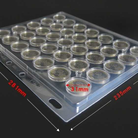 Refill transparan keras PET 281 x 235mm 35 lubang kapsul koin bulat 27 mm