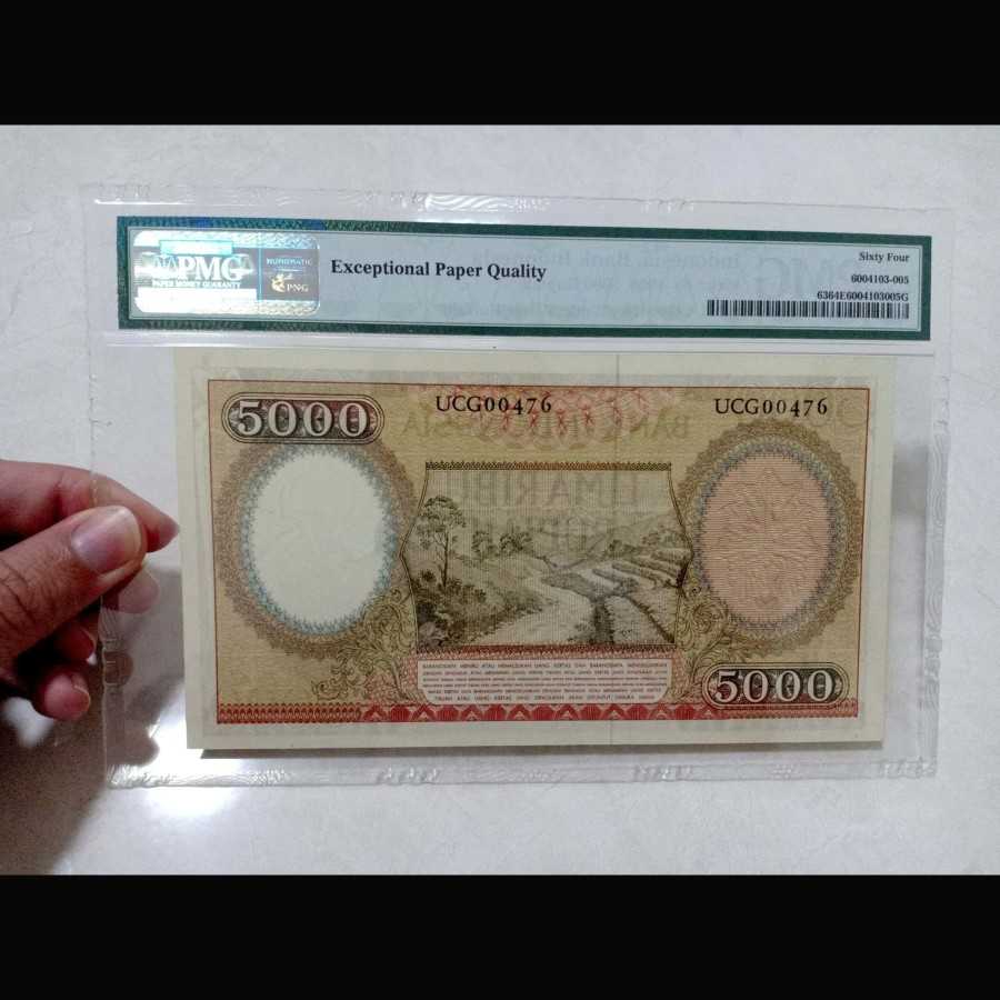 SERI PEKERJA 5000 RUPIAH 1958 COKLAT PMG 64 EPQ UNC