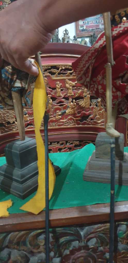 Sepasang Wayang Golek Ksatria berselendang merah dan kuning Jawa Barat