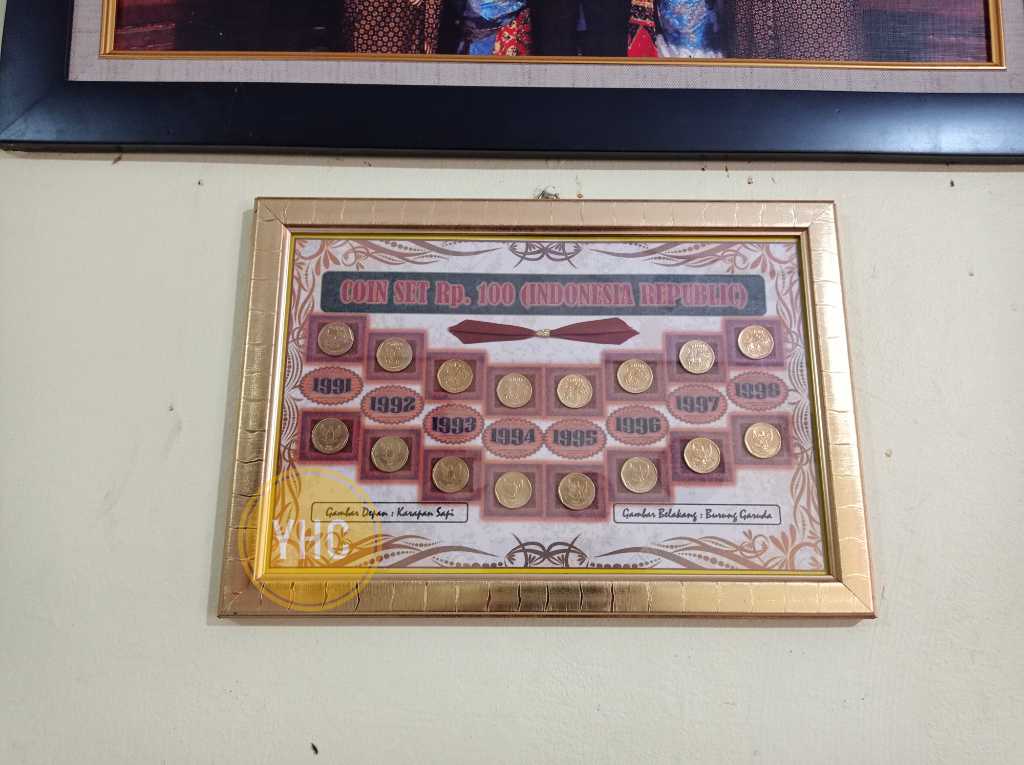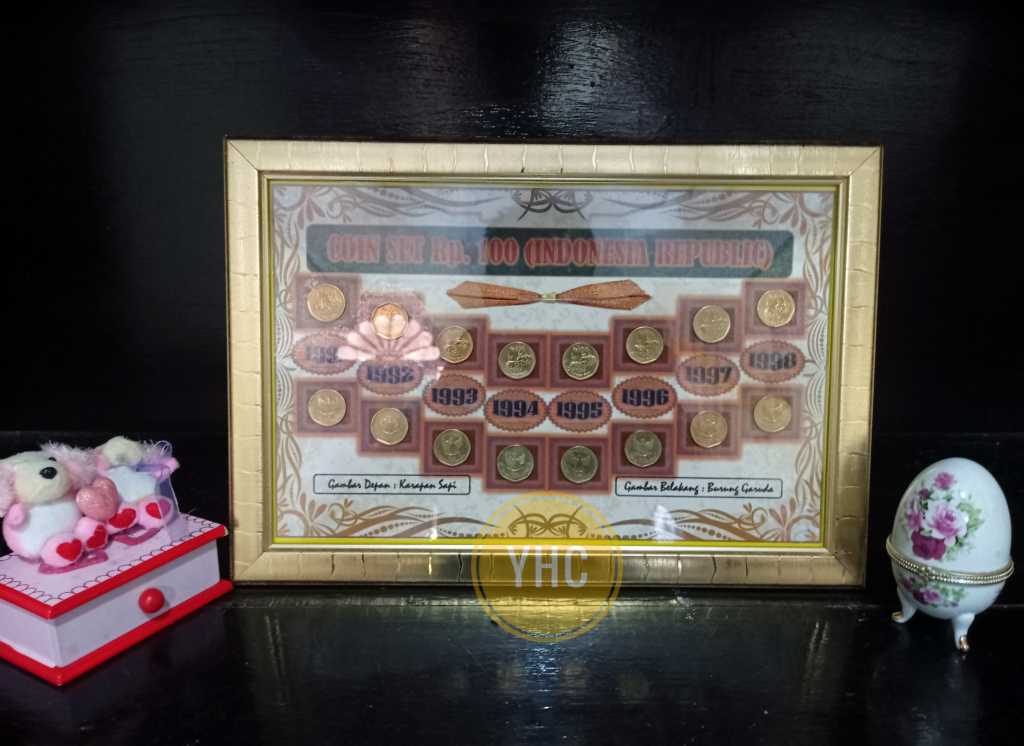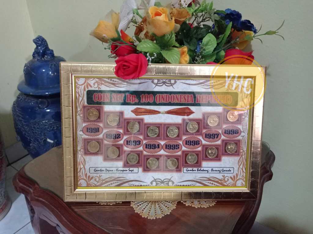 Set Logam / Koin Rupiah (Rp.100 / Karapan Sapi) dalam Pigura bingkai Kaca.