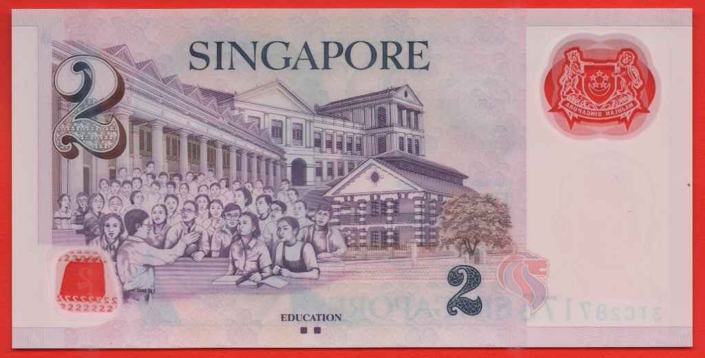 Singapore 2 Dollars (2010) Polymer Note with 2 dots below EDUCATION