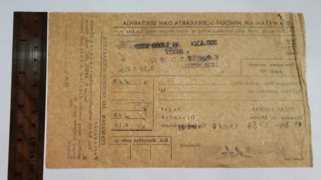 Surat Tagihan Air Minoem Jaman Awal Kemerdekaan Tahun 1947; No.49040; Keboemen, Djawatan Air Minoem Soerakarta dan Sekitarnya