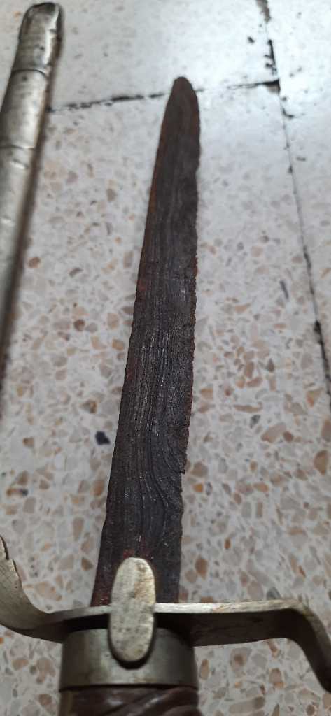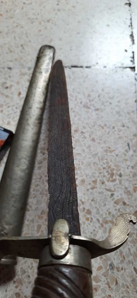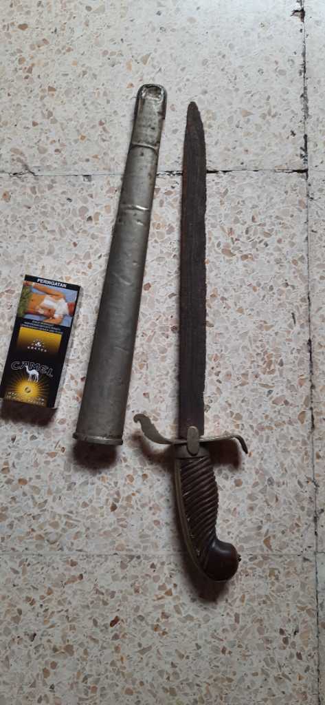 Pedang perempuan berpamor singkir utk ukuran panjang bilah sekitar 30cm,sarung kombinasi perak kadar 400