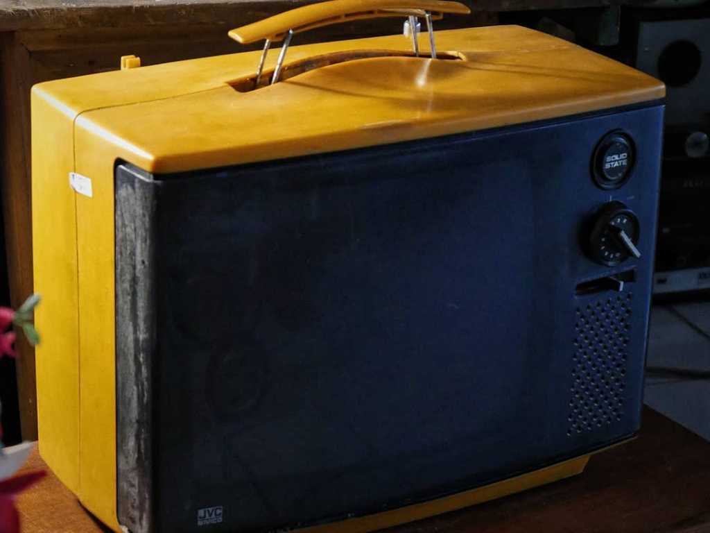 Tv jadul era 70an. Warna dan bentuknya retro bgt nih. Cocok untuk display. Kondisi mati.