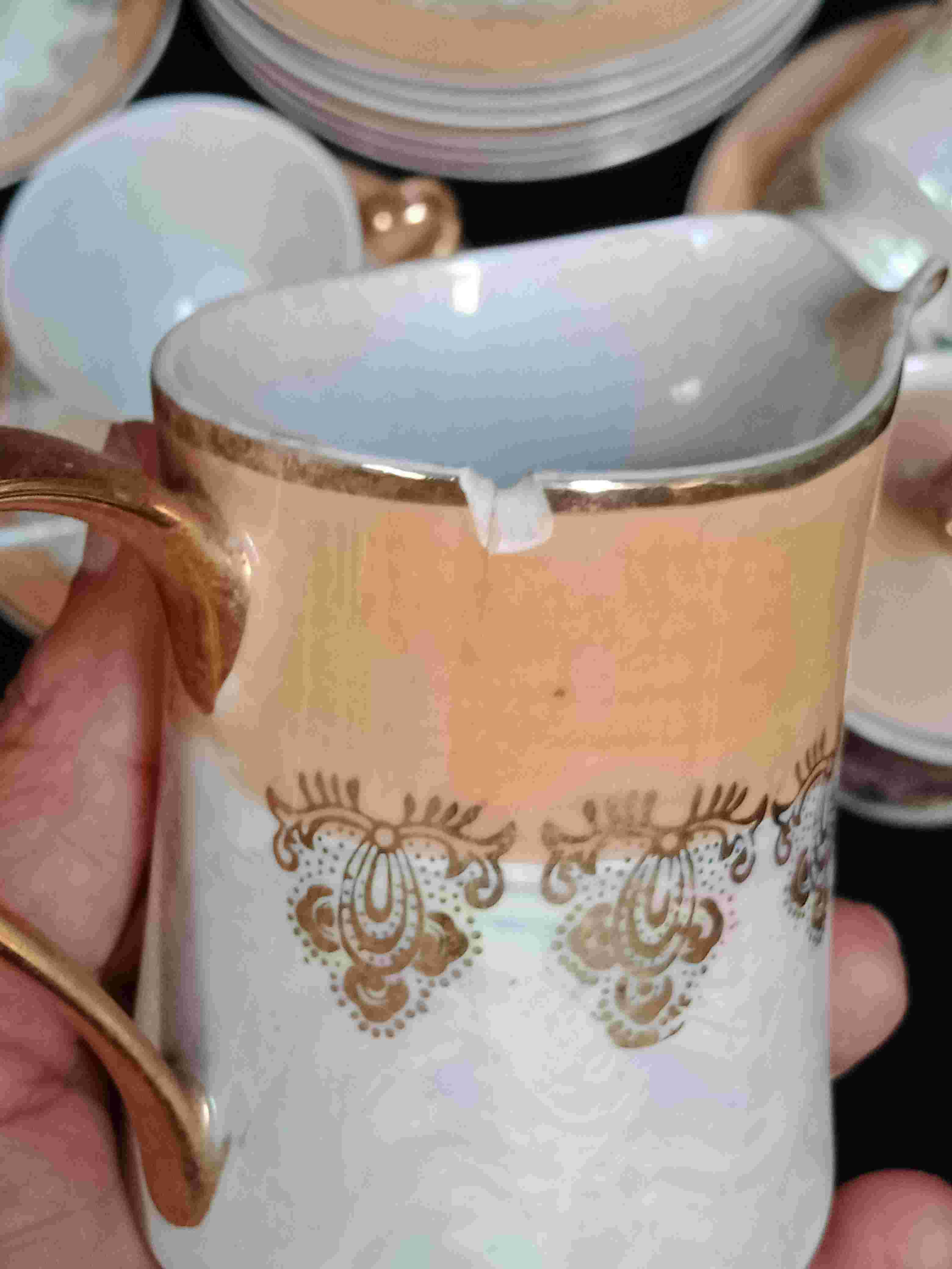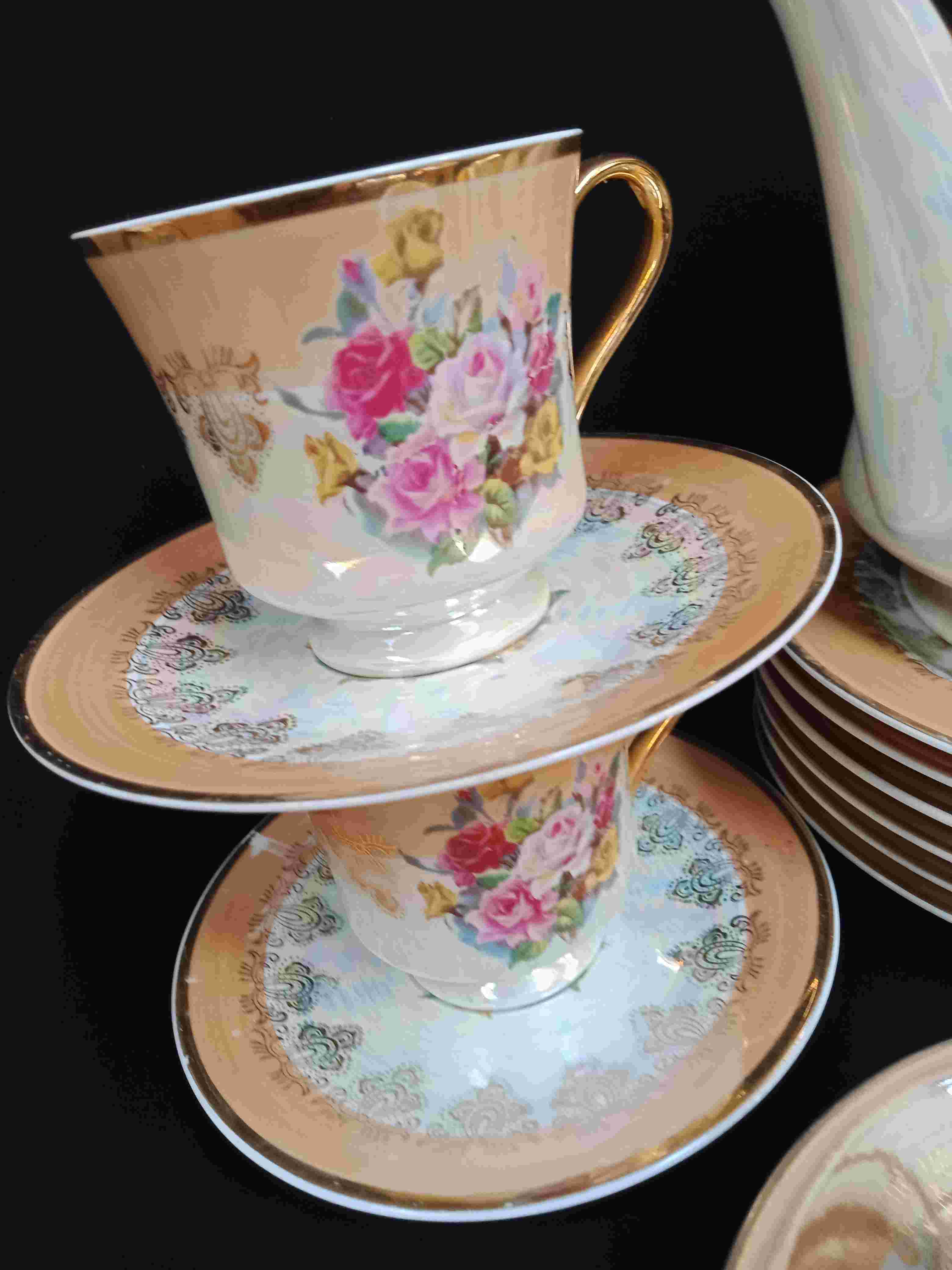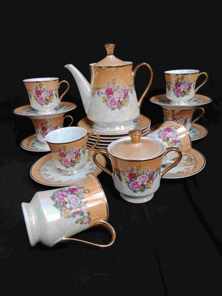 1 Teko 1 Mild pot ada cip gempil 1 Temat gula 6 cangkir 6 Pisin 6 piring kue