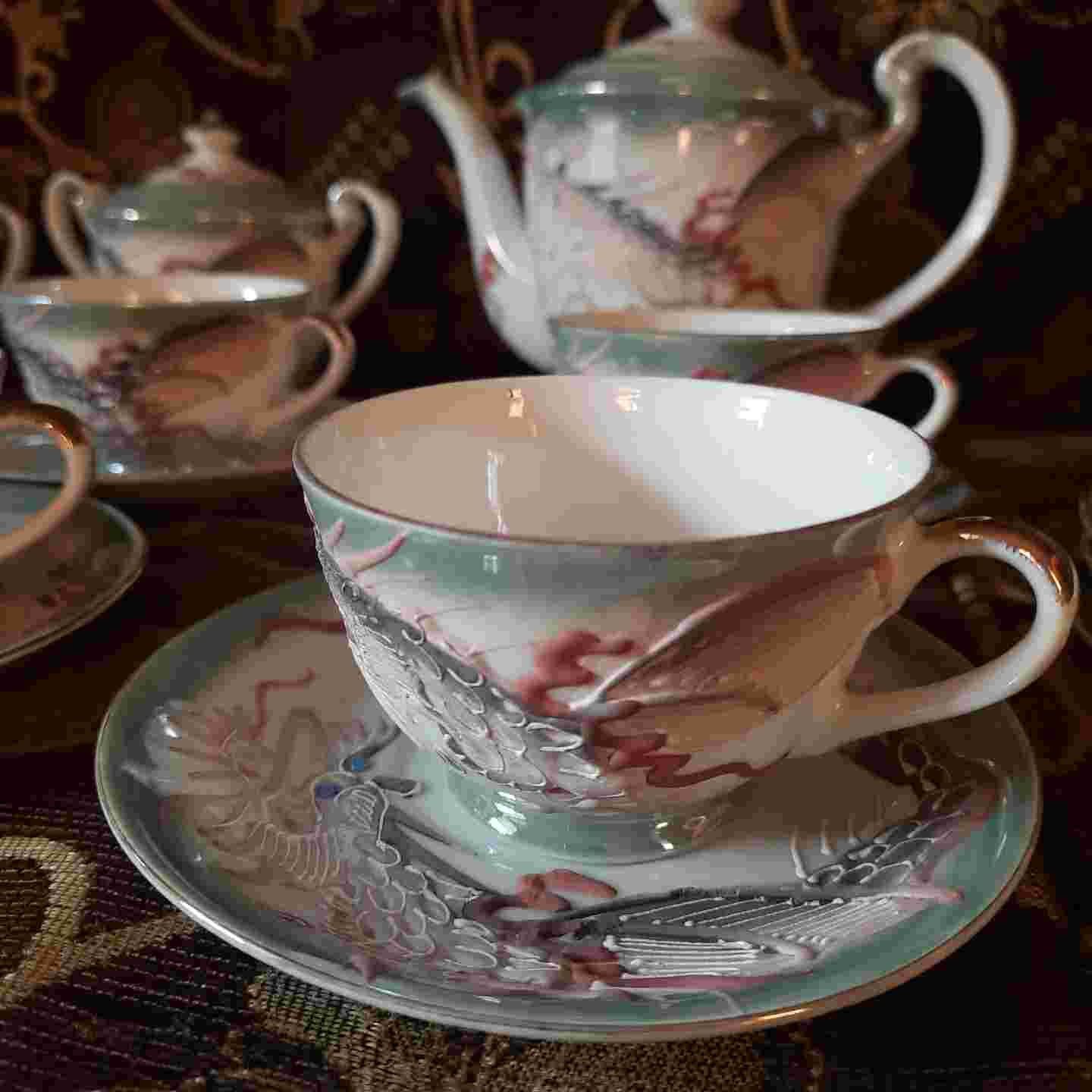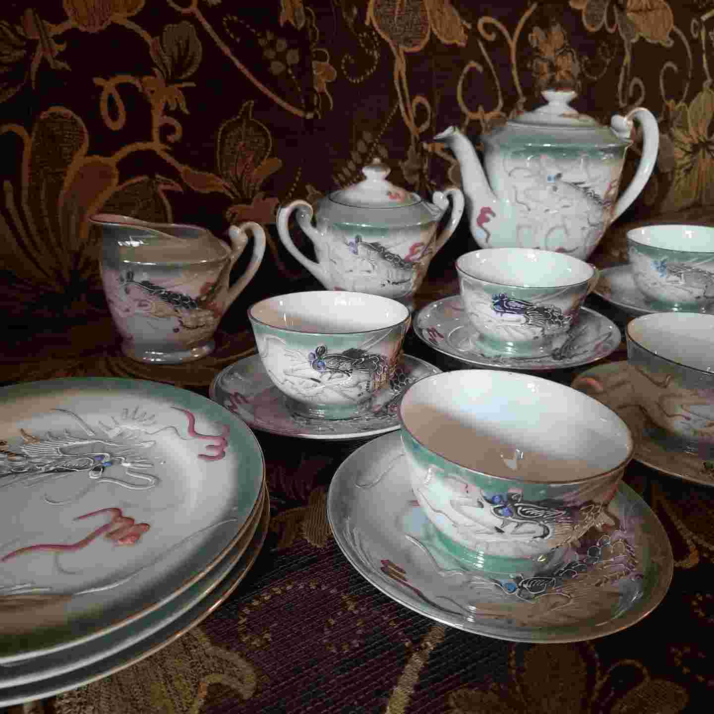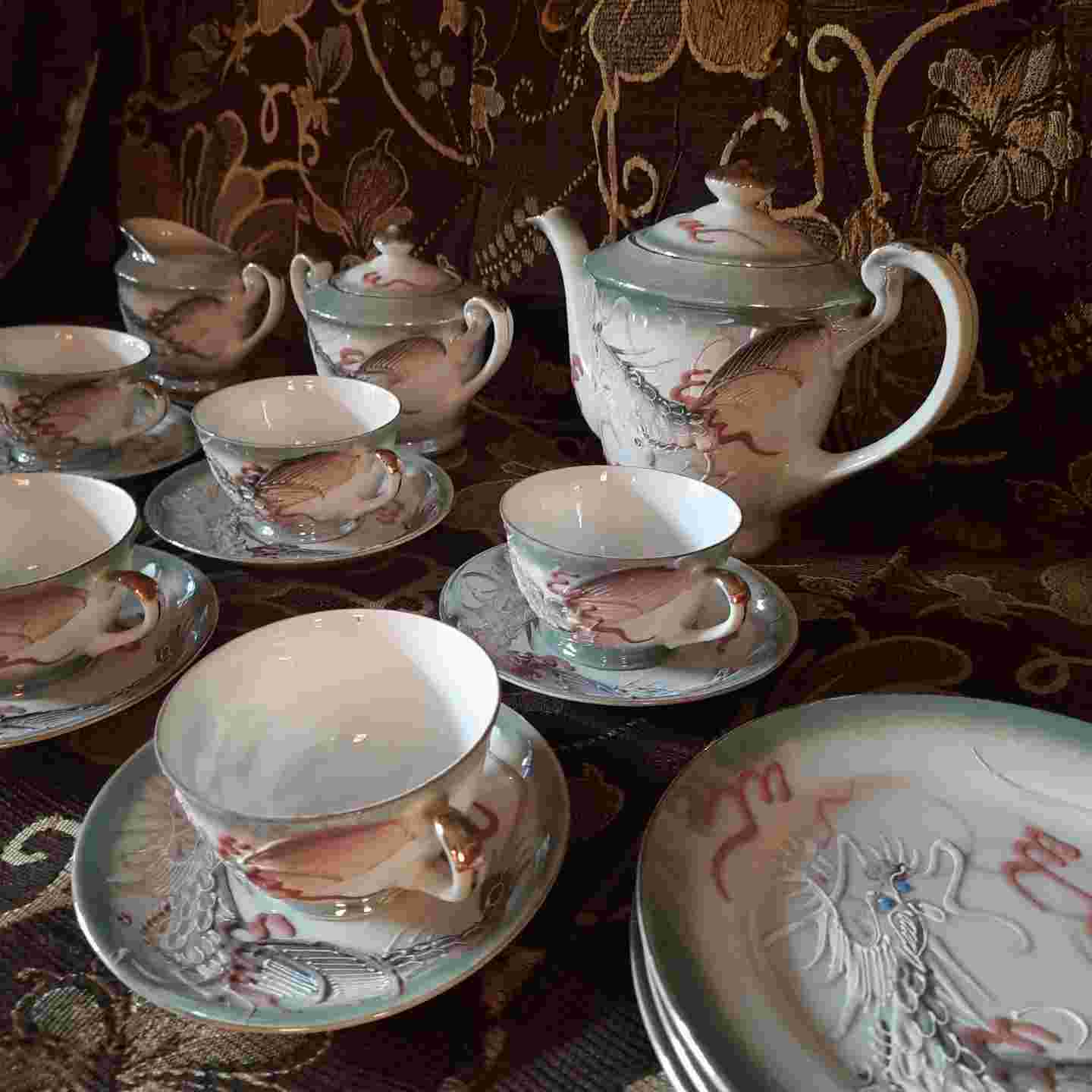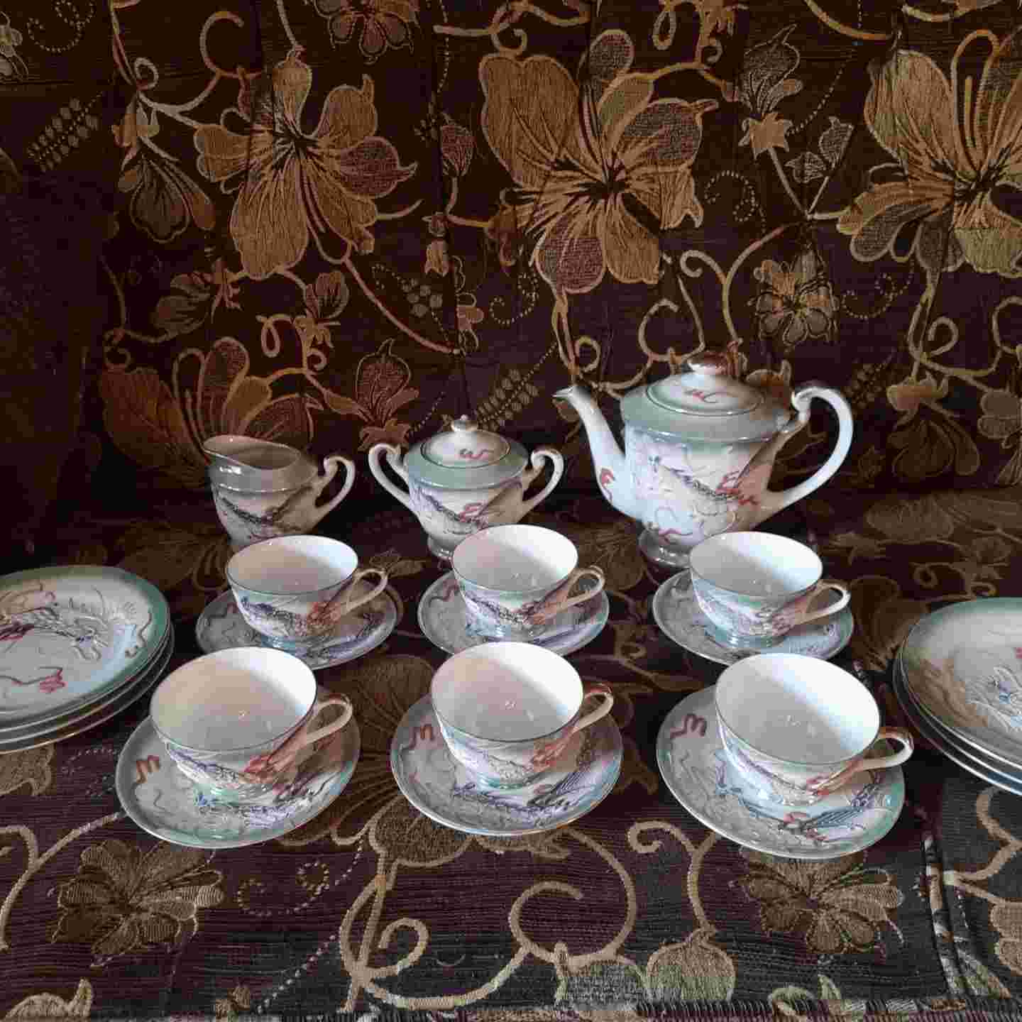 Teaset satsuma oshin 1set lengkap dengan lepek kuenya Kondisi mulus semua Naga oshin