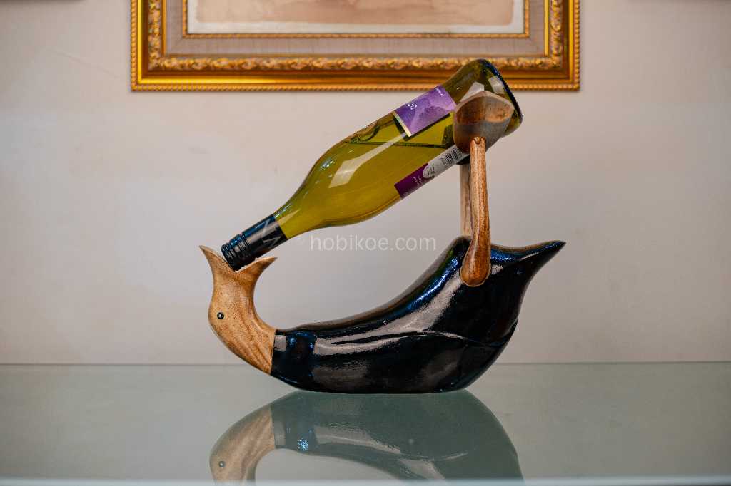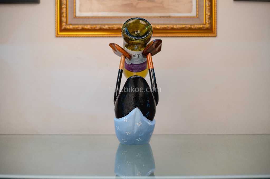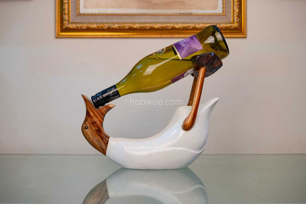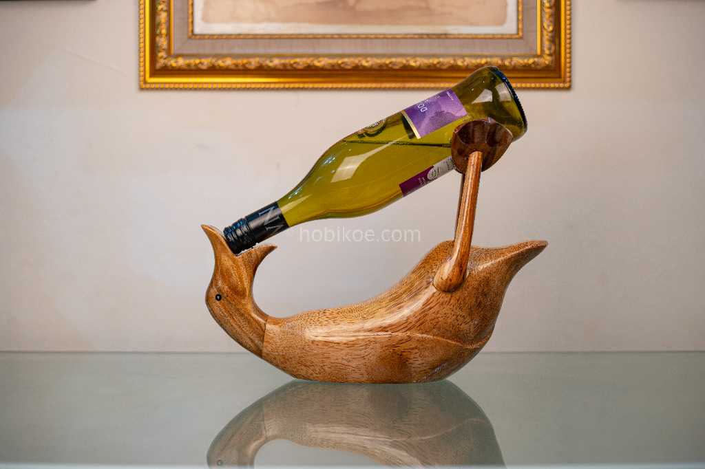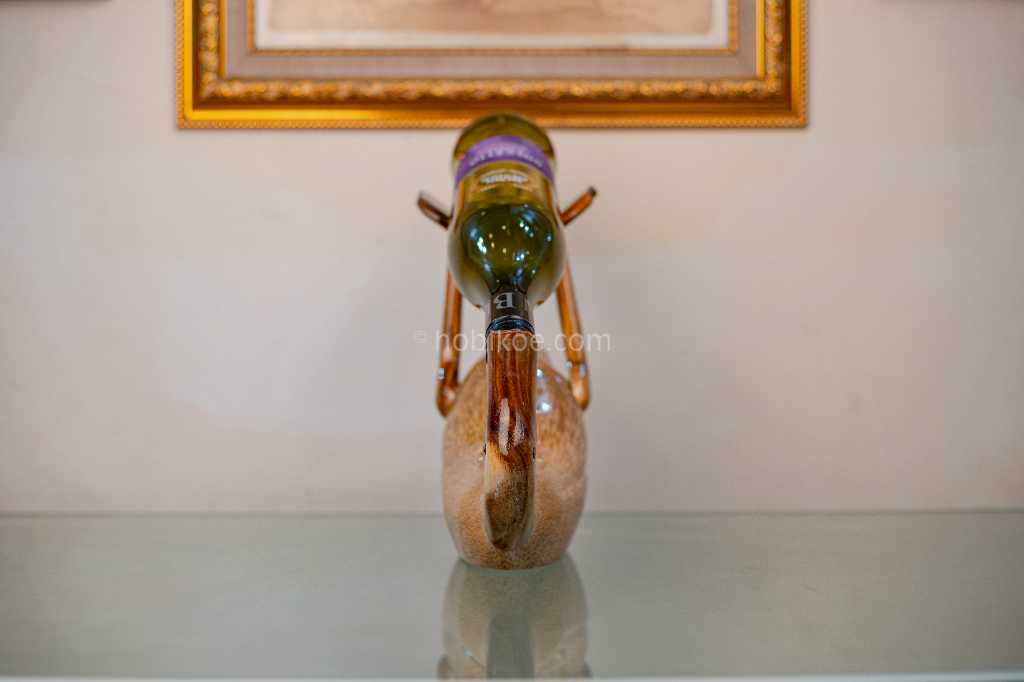 Drinking Duck Bottle Holder. Wooden Bamboo Root Sculpture With Paint.
