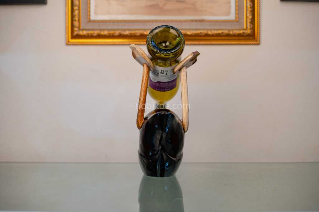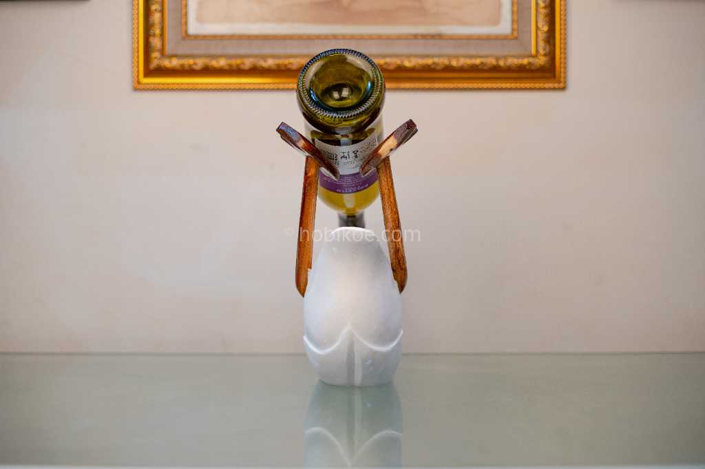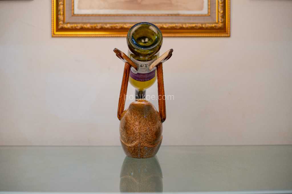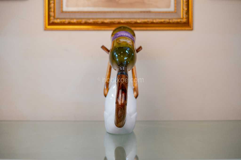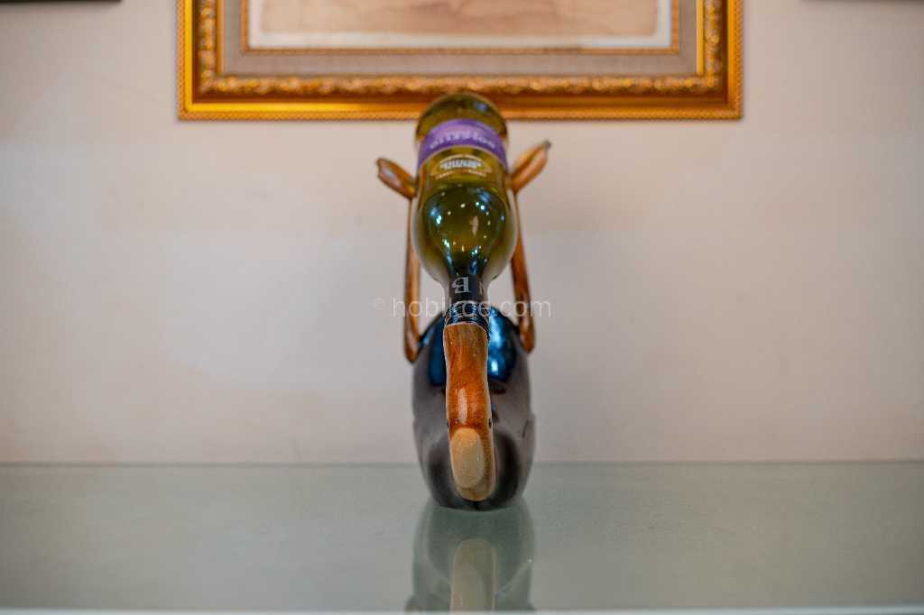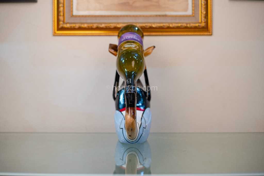 Drinking Duck Bottle Holder. Wooden Bamboo Root Sculpture With Paint.
