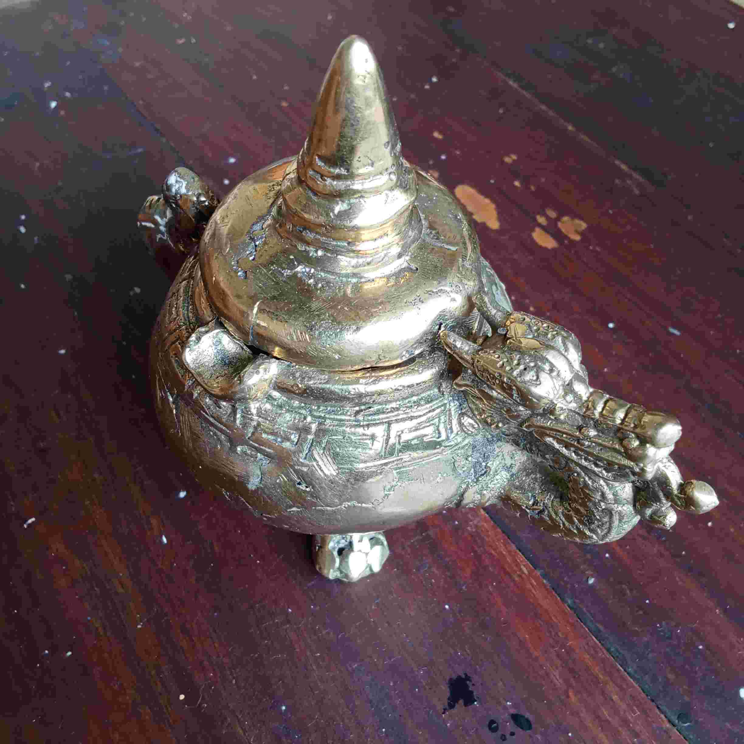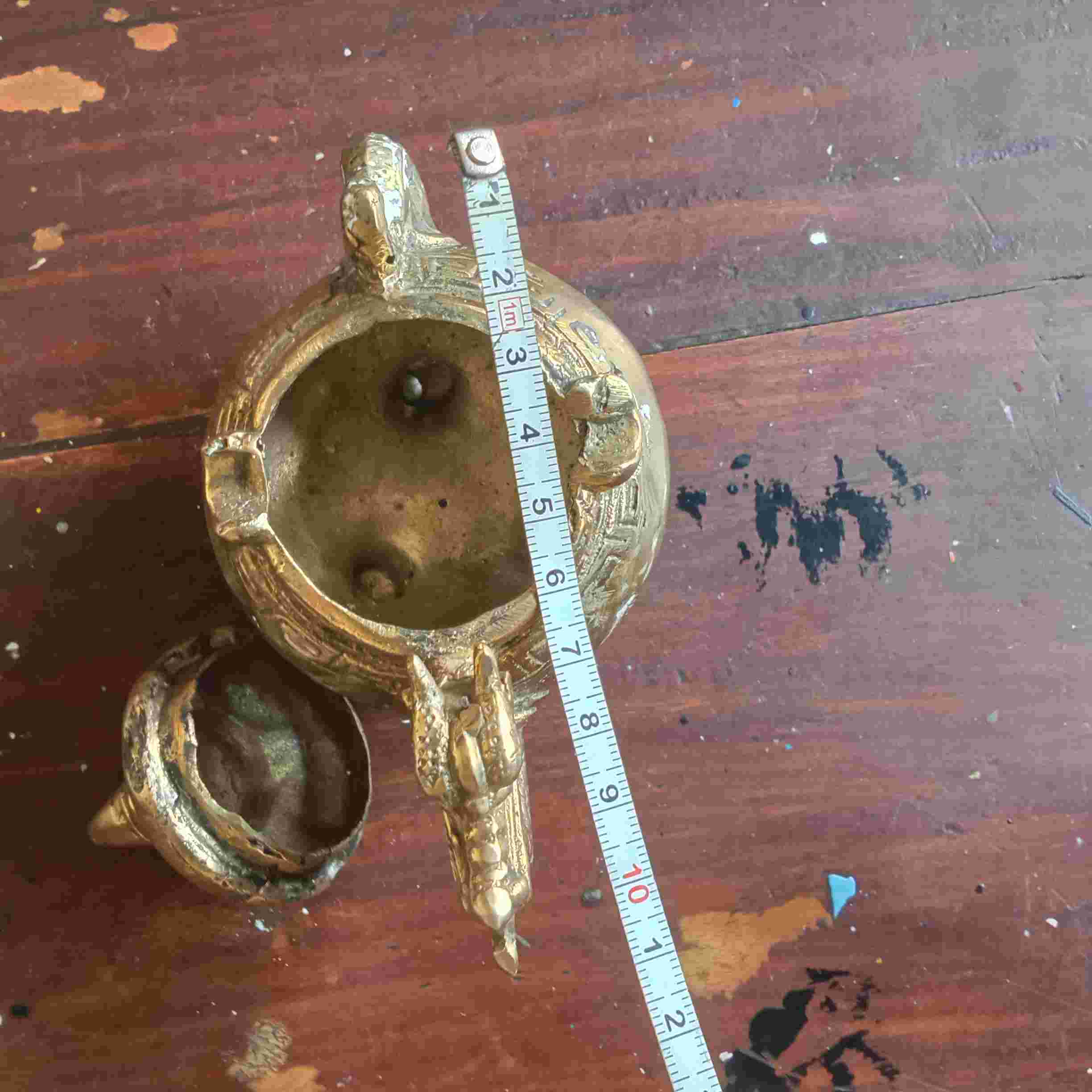 Koleksi Kerajinan Kuningan Tempat Dupa Bahan Kuningan Tebal Motif Nagaliong Gaya Vintage