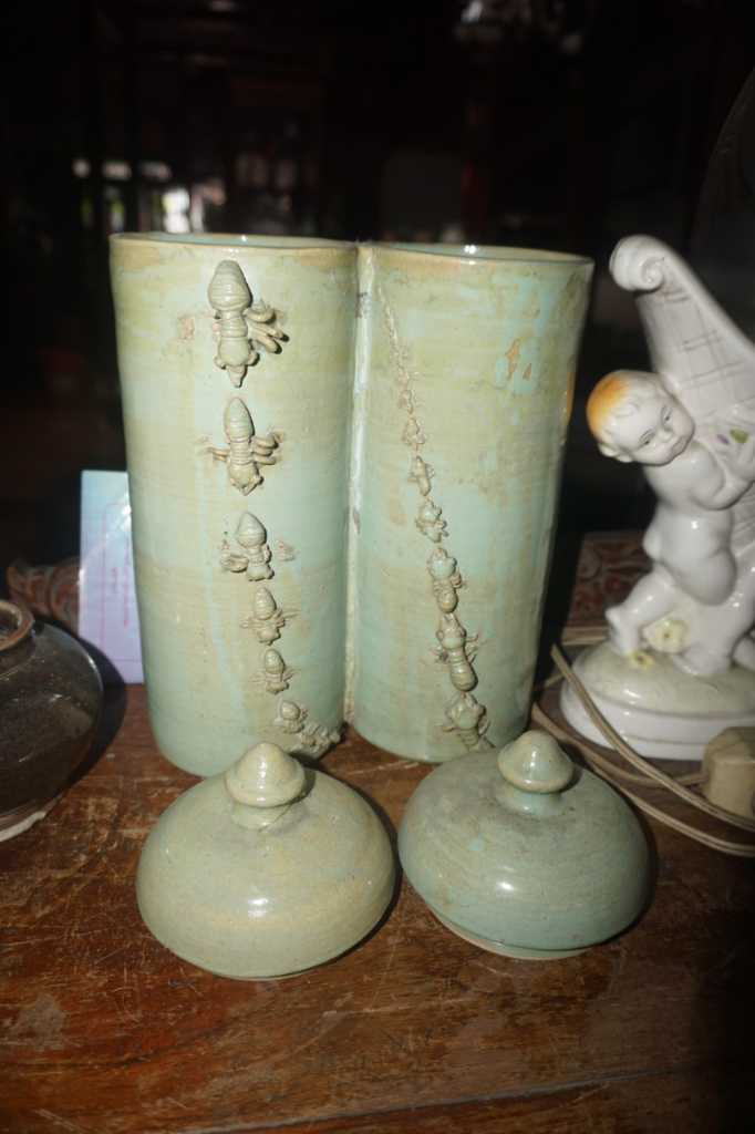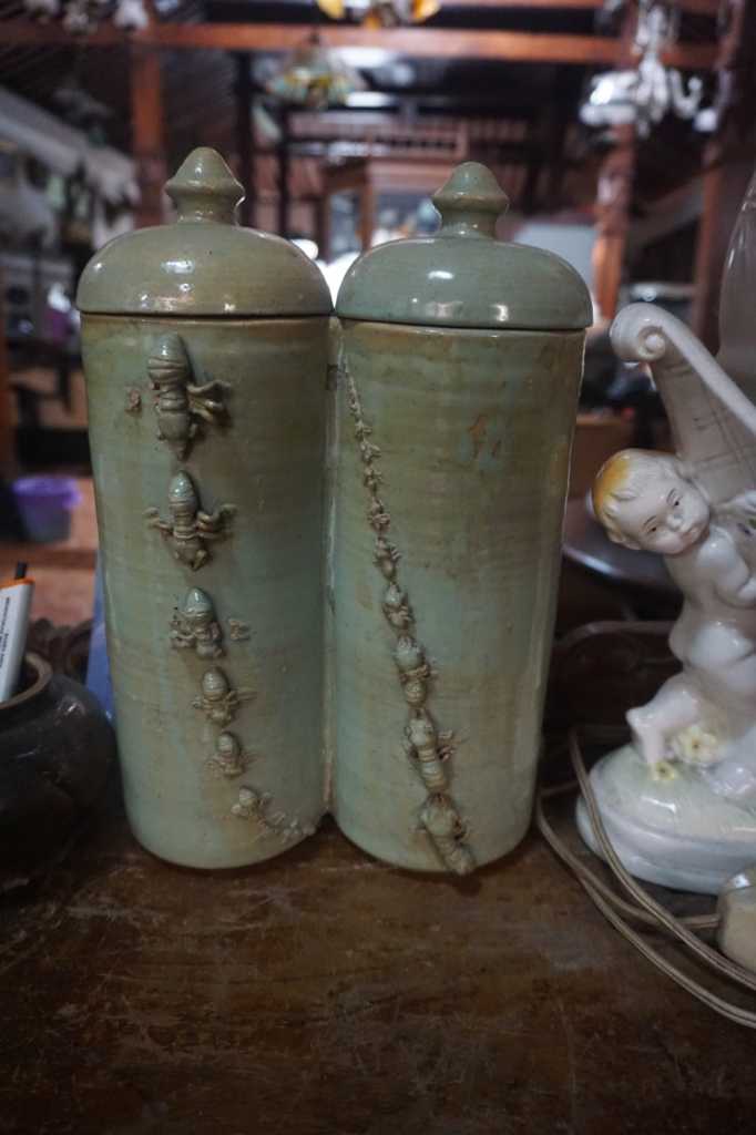 Barang Antik Sepasang Vas Kristal Eropa Hijau Tua Utuh Mulus Jadul Kuno