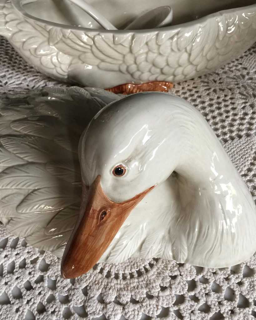 Tempat sup bentuk angsa. Sangat cantik untuk pajangan atau digunakan.