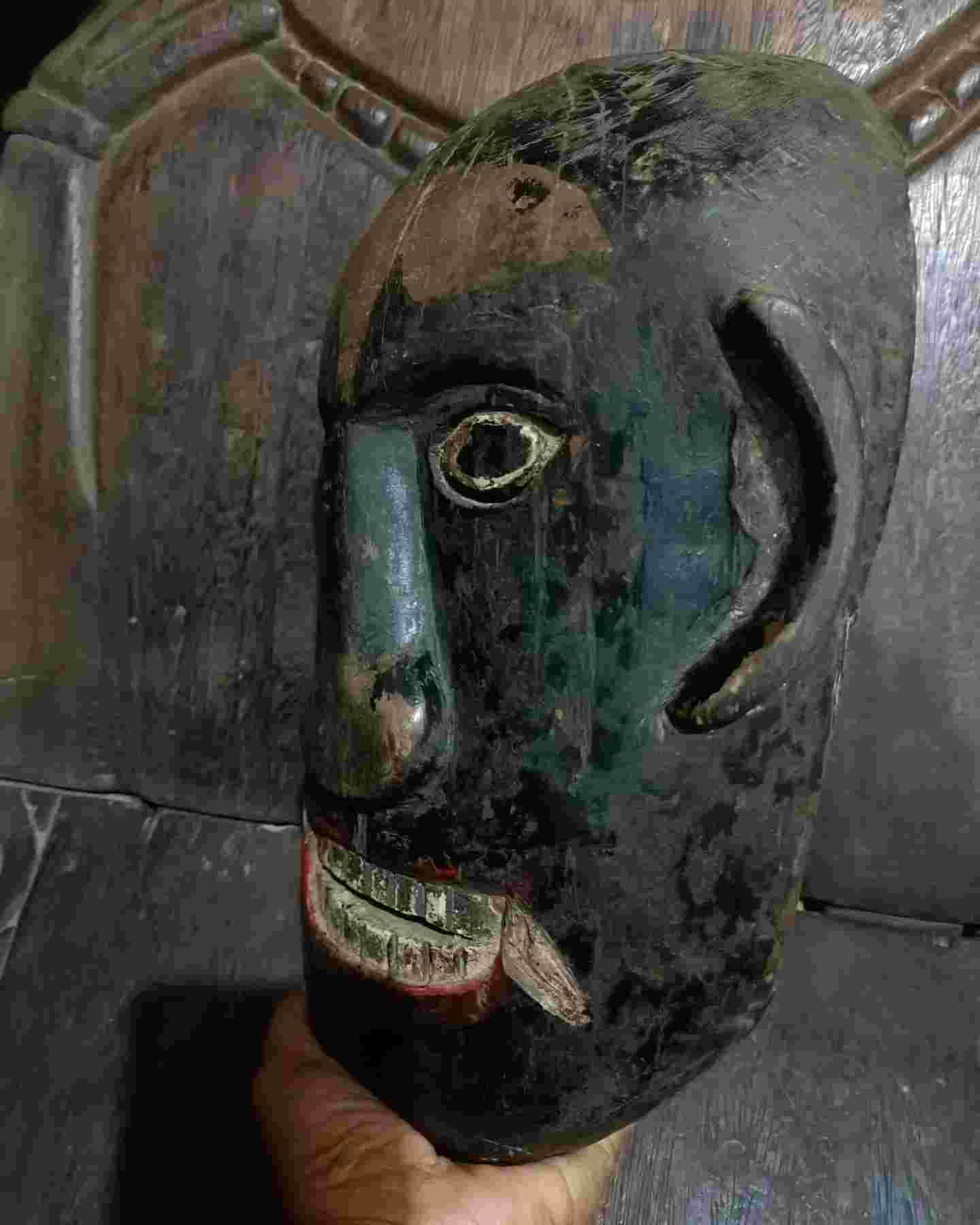 Topeng Primitif keras , Topeng Pesisir Topeng tua ,kurang lebih 100 rh Tinggi 30 cm ,lebar 20 cm Topeng kuno