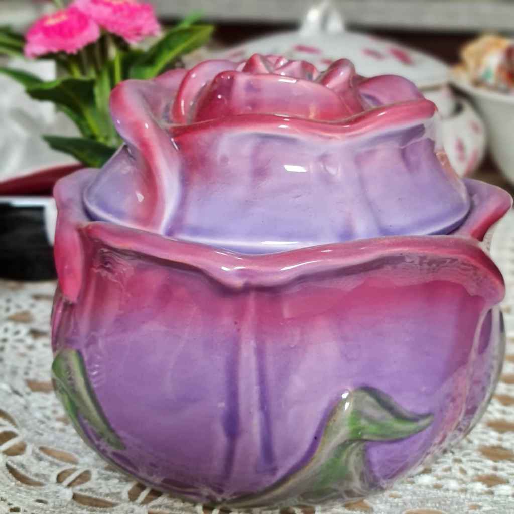 Toples porcelain, Tutup model Rose Purpple ukuran diameter 16,5cm, kondisi baik utuh, mulus