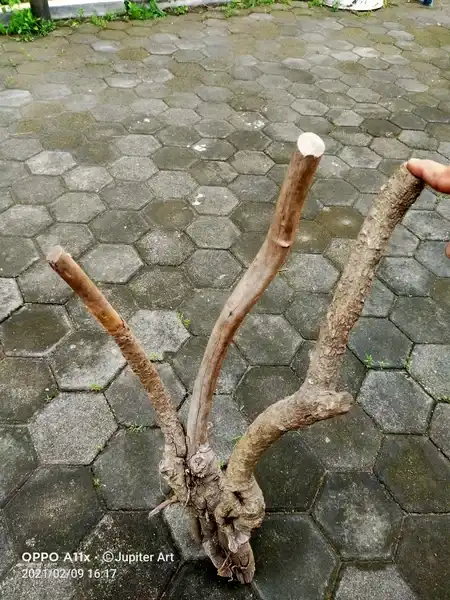 Bahan Tawangsari Bentuk sperti Trisula shiva sangat unik origin sendang widodari parangtritis. Tawangsari adalah kayu langka dimana kayu ini mempunyai kisah sejarah yang panjang mengenai Dewi Nawangwulan dan Jaka Tarub. Sekaligus pasangan kayu Tlogosari.