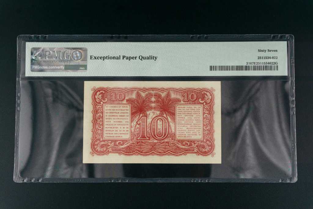 UANG PMG NETHERLANDS INDIES / JAPANESE OCC. WWII 10 ROEPIAH 1944 SCORE 65 EPQ