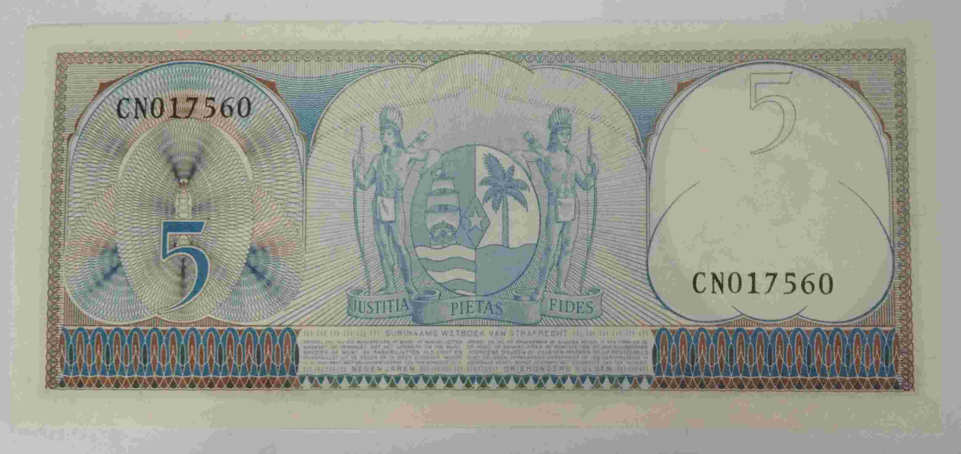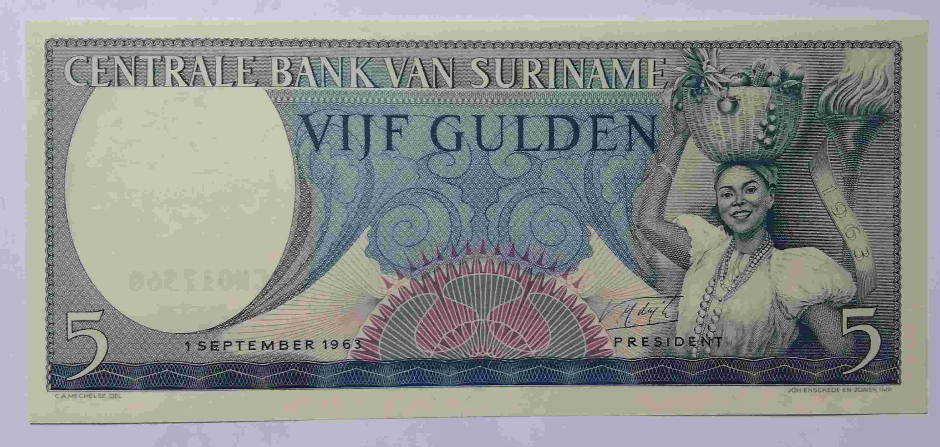 Uang Asing Suriname 5 Gulden 1963.h.692