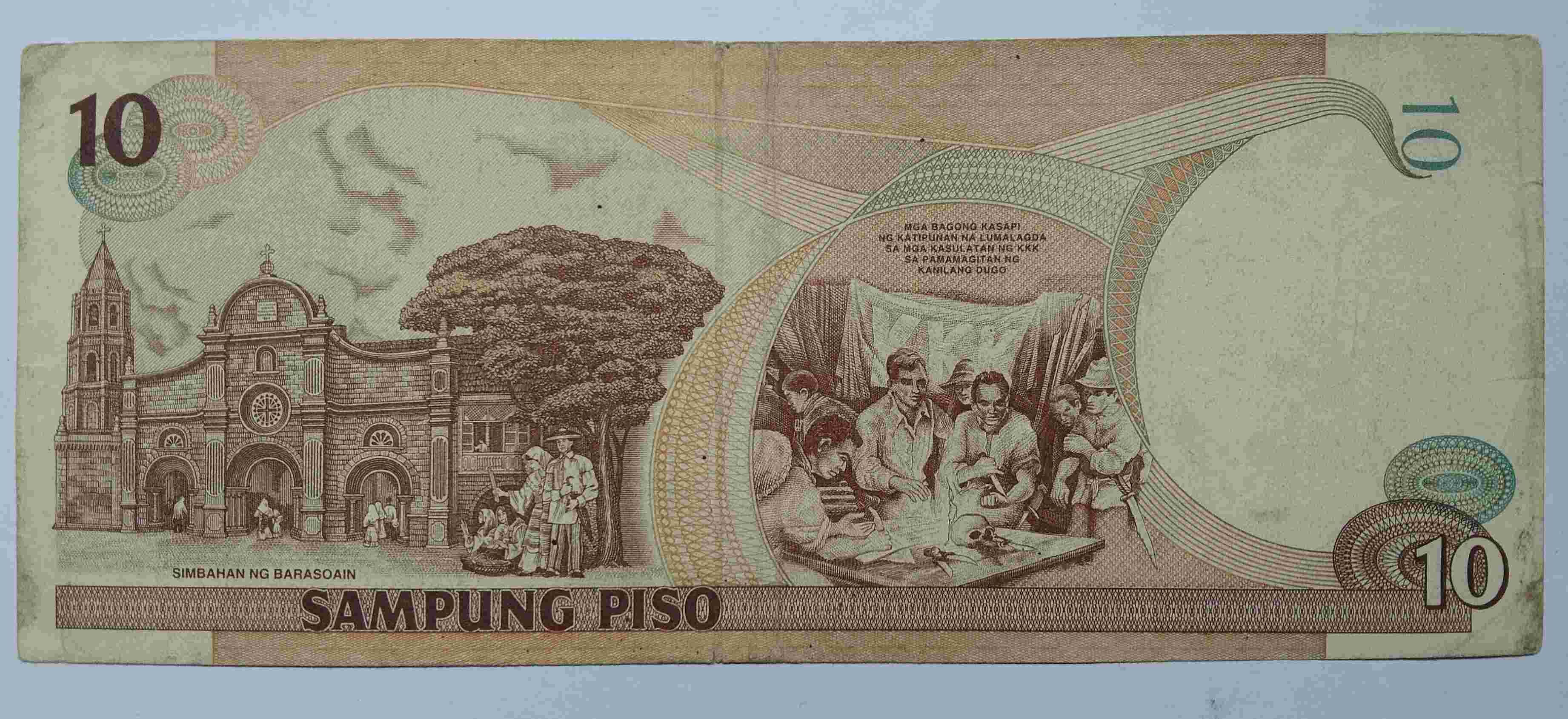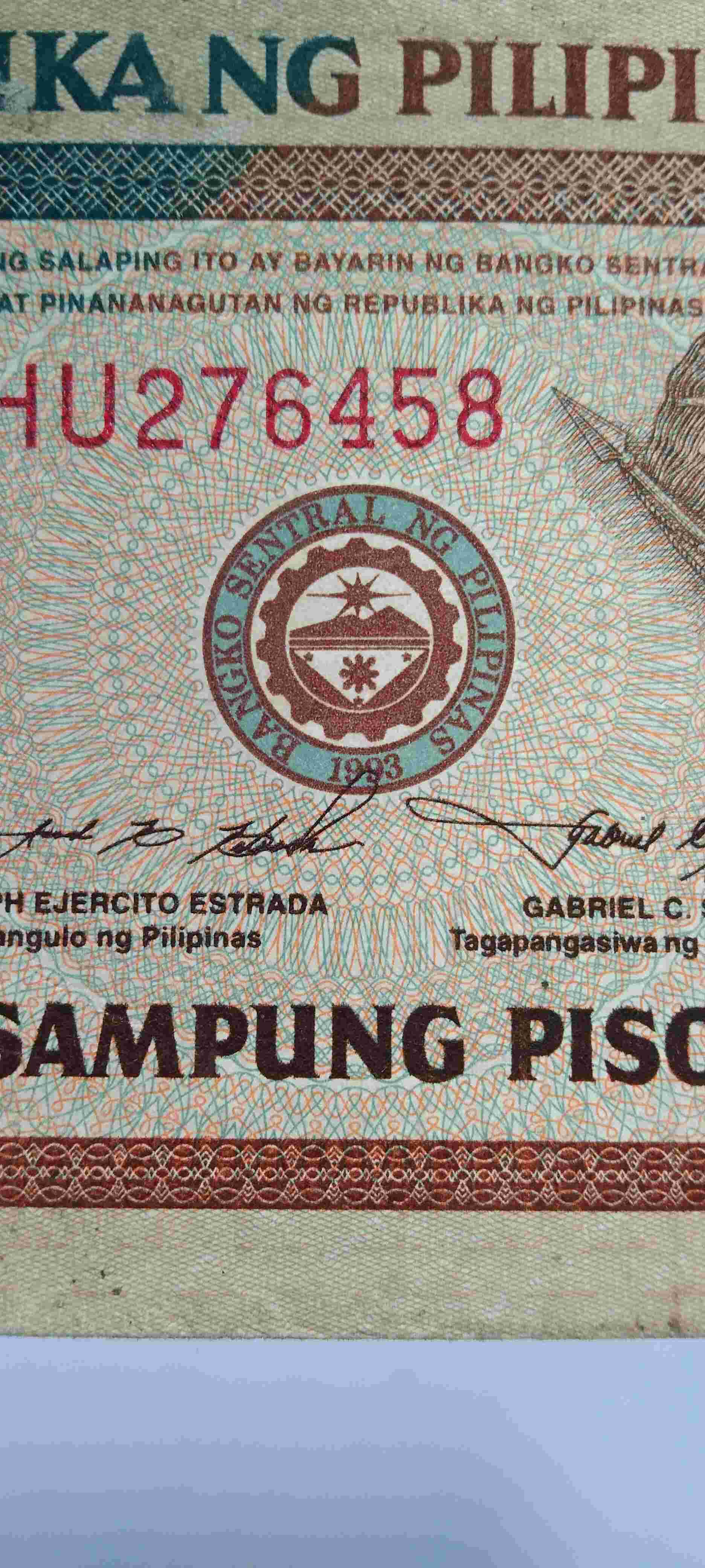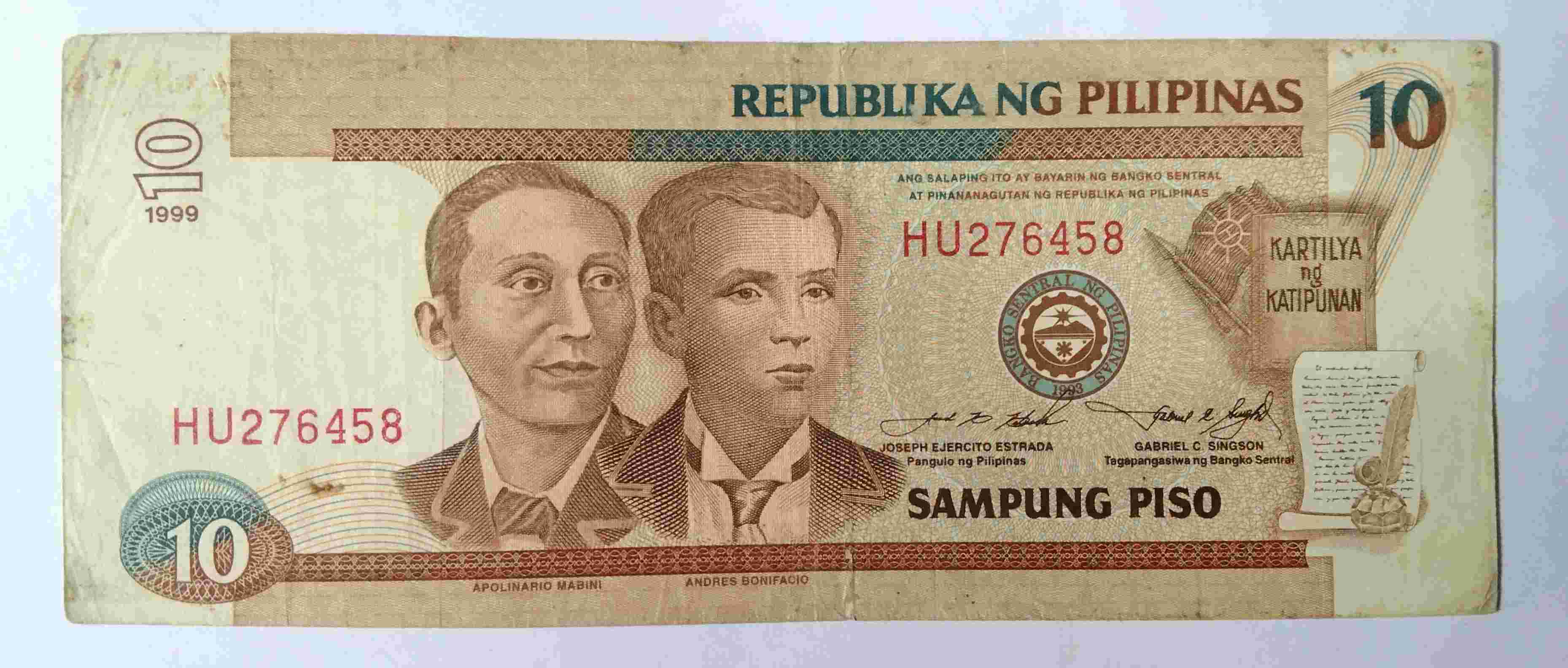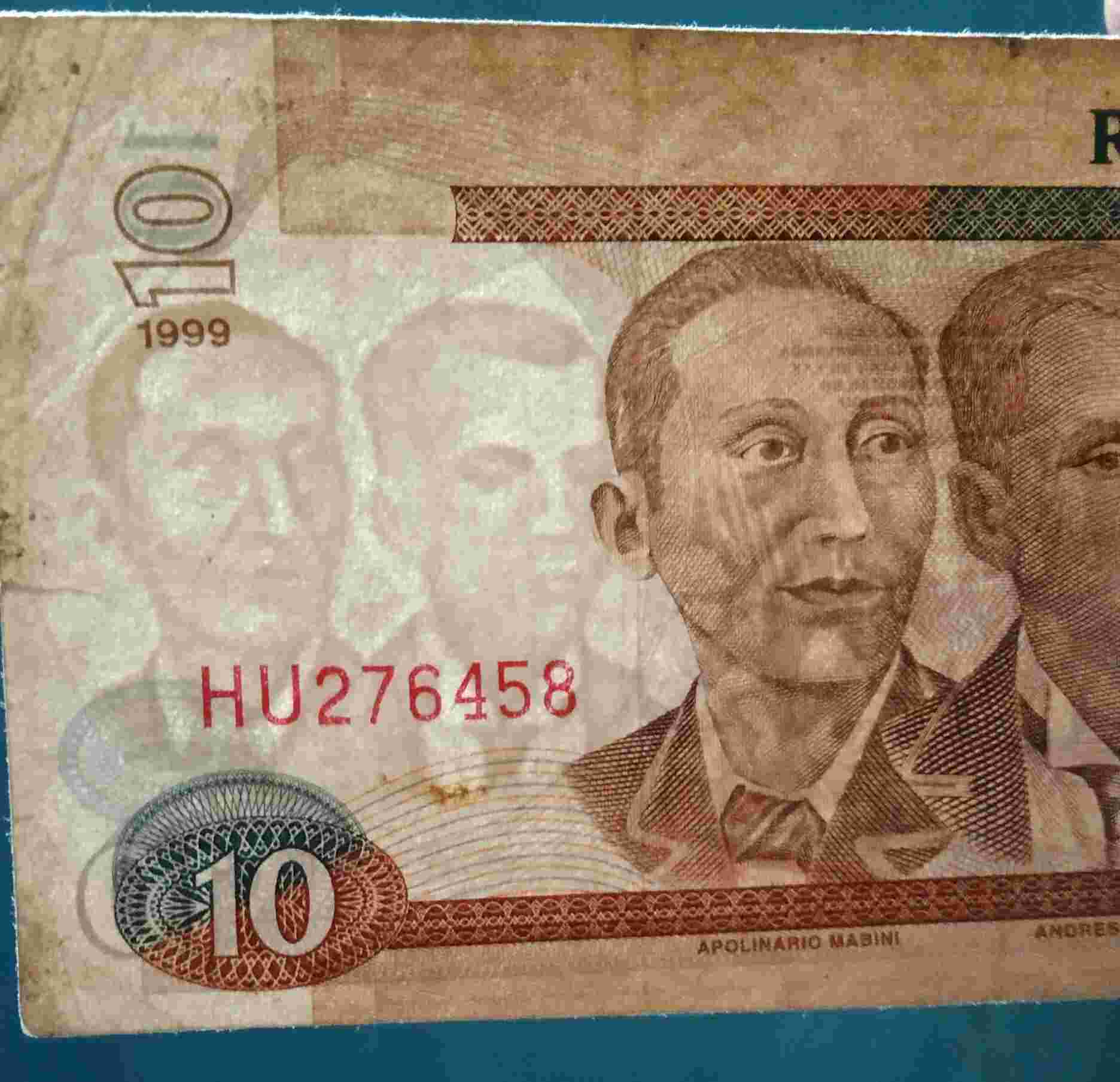 Uang kertas Filipina 10 Piso .Prefiks 2 huruf . Seri HU276458
