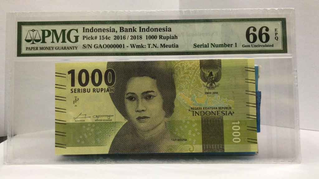 Nama barang : Uang Indonesia 1.000 Cut Meutia PMG 66 Serial Number 1