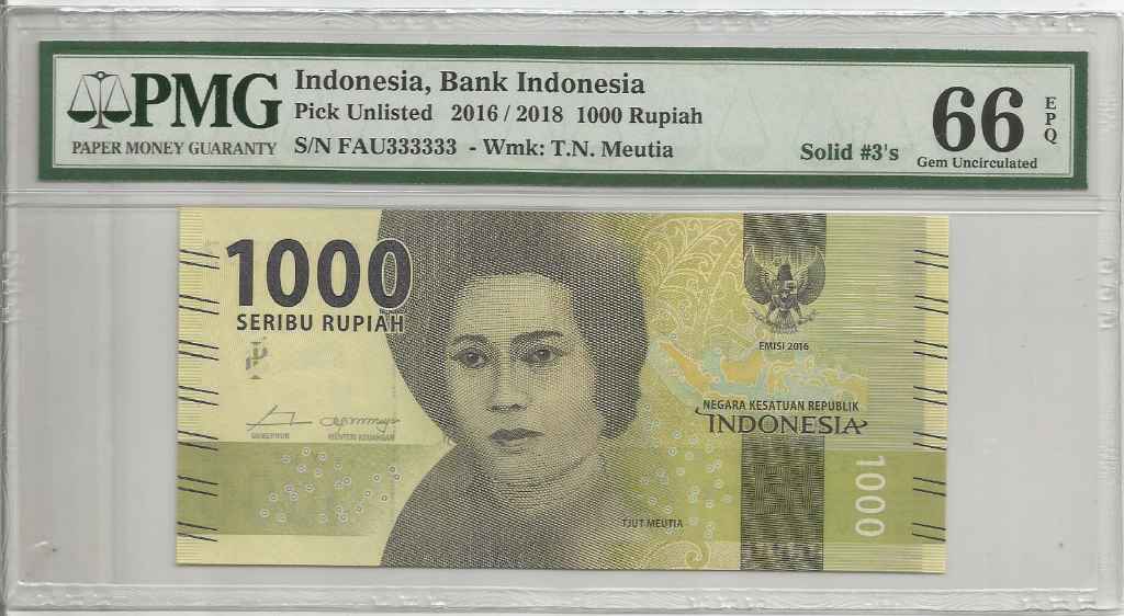 Nama barang : Uang Indonesia 1000 Rupiah Cut Meutia PMG 66 Solid #3's