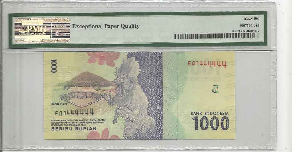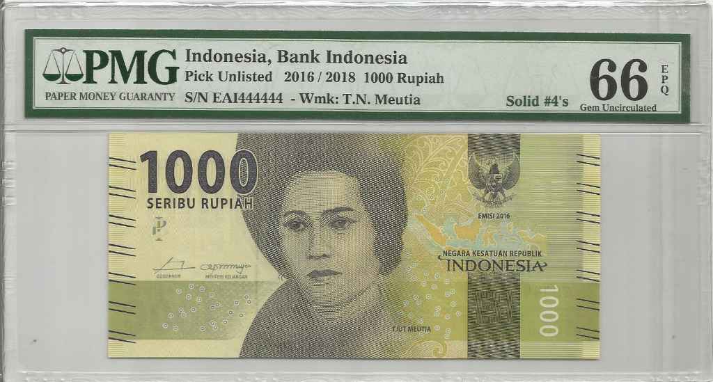 Nama barang : Uang Indonesia 1000 Rupiah Cut Meutia PMG 66 Solid #4's
