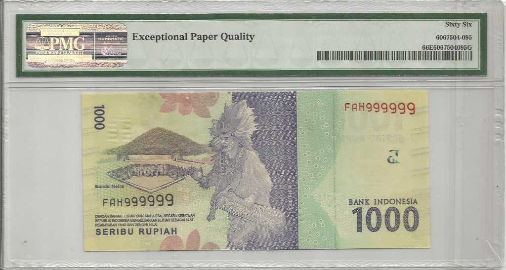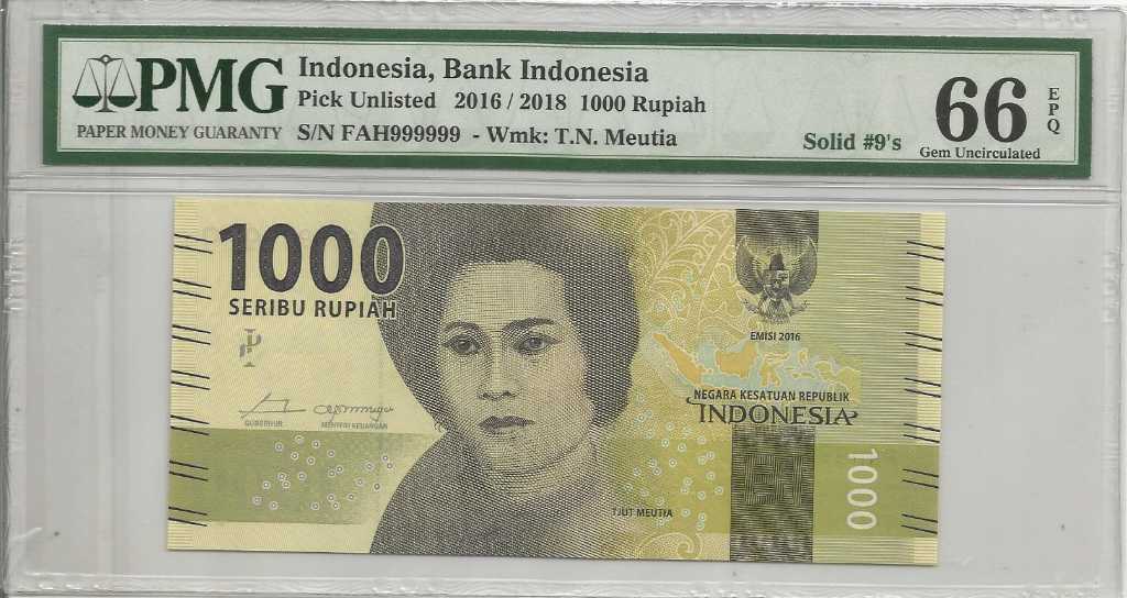 Nama barang : Uang Indonesia 1000 Rupiah Cut Meutia PMG 66 Solid #9s