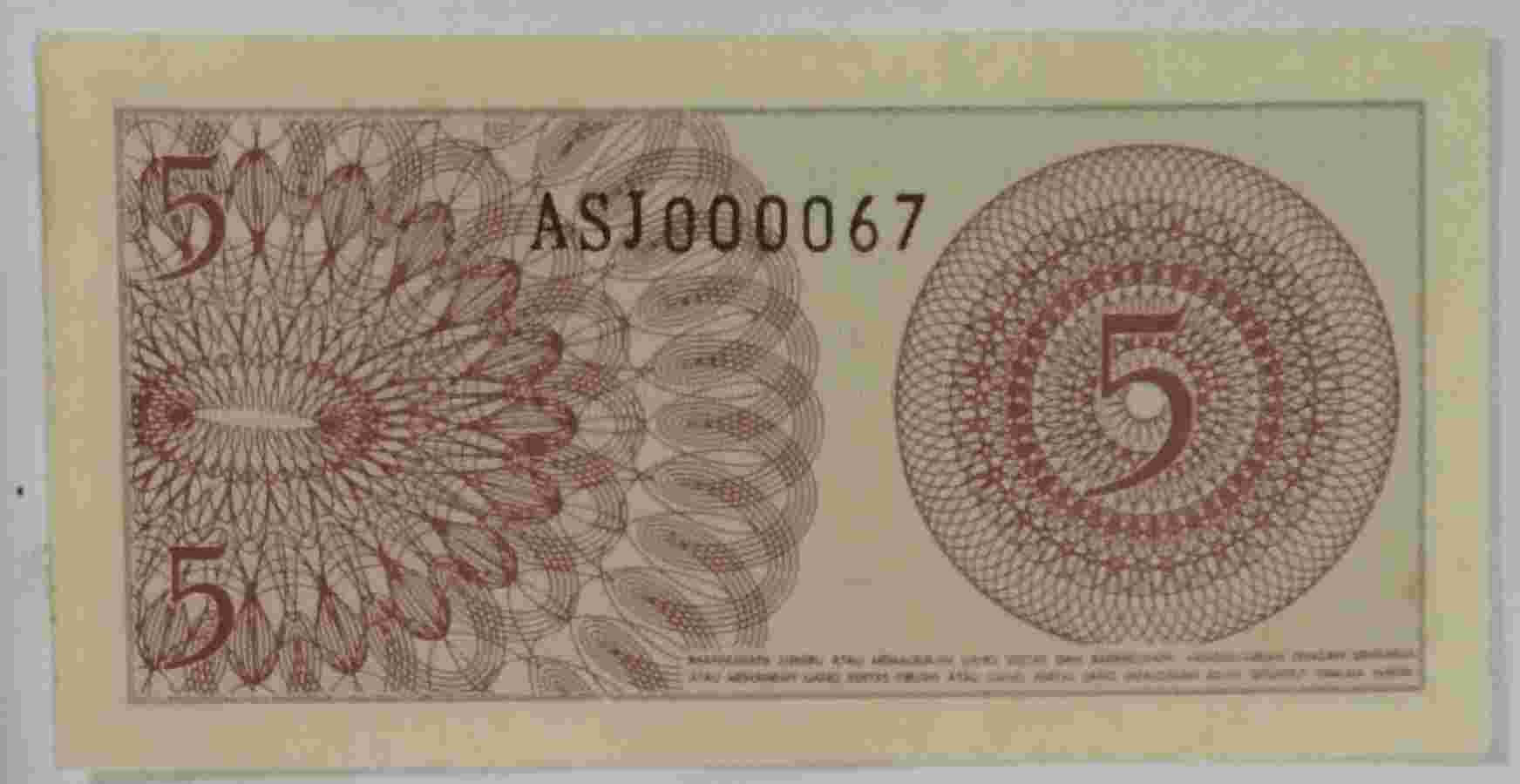 Uang Indonesia 5 Sen Seri sukarelawan ASJ 000067.h 690