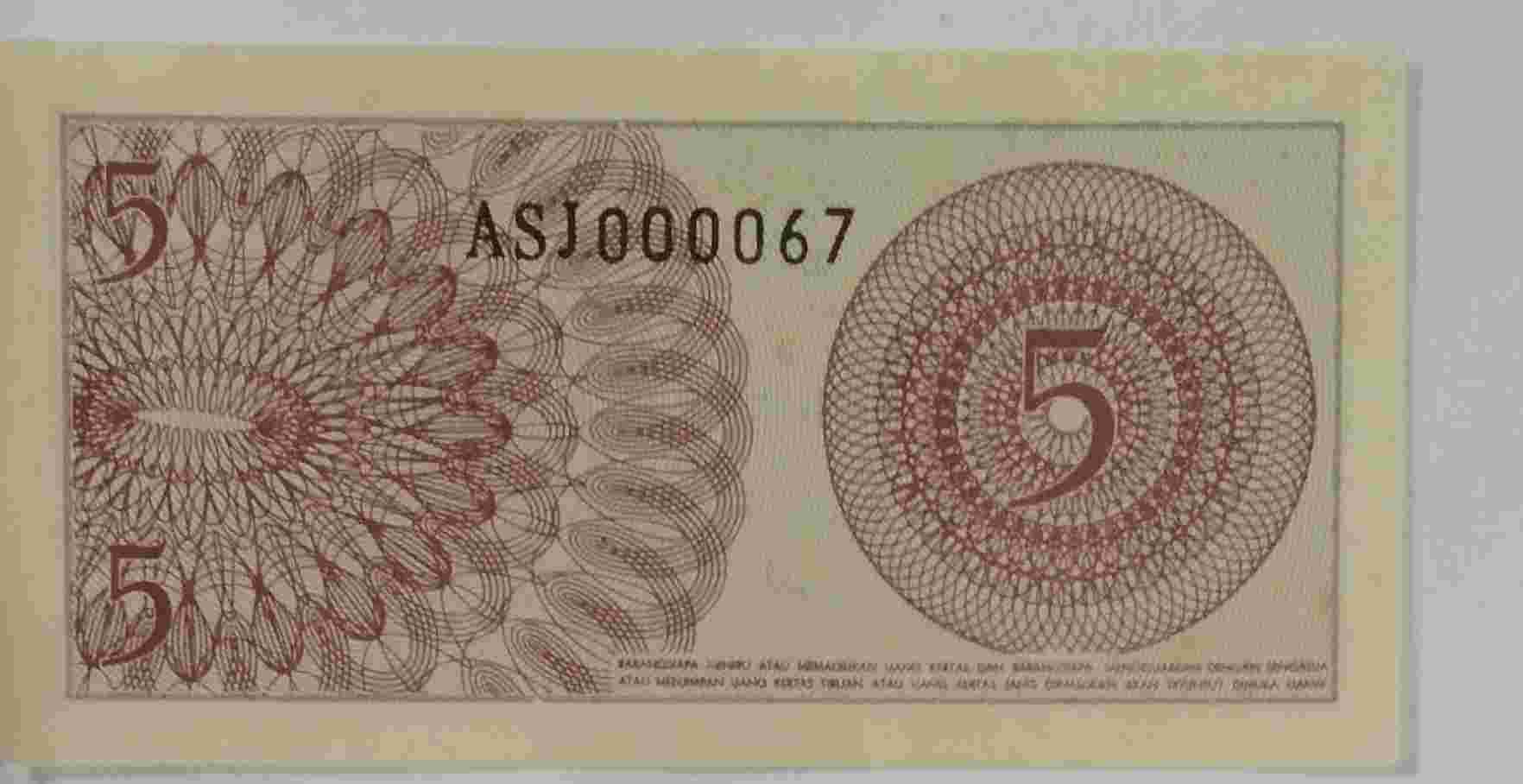 Uang Indonesia 5 Sen 1964 sukarelawan Seri ASJ 000067