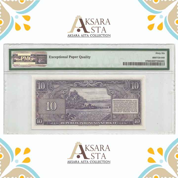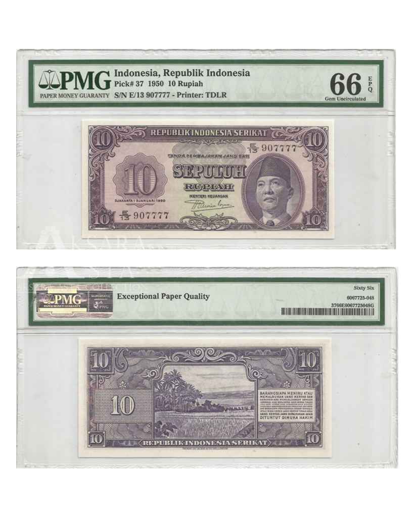 Uang Indonesia Rp 10 th 1950 PMG 66 EPQ No Cantik
