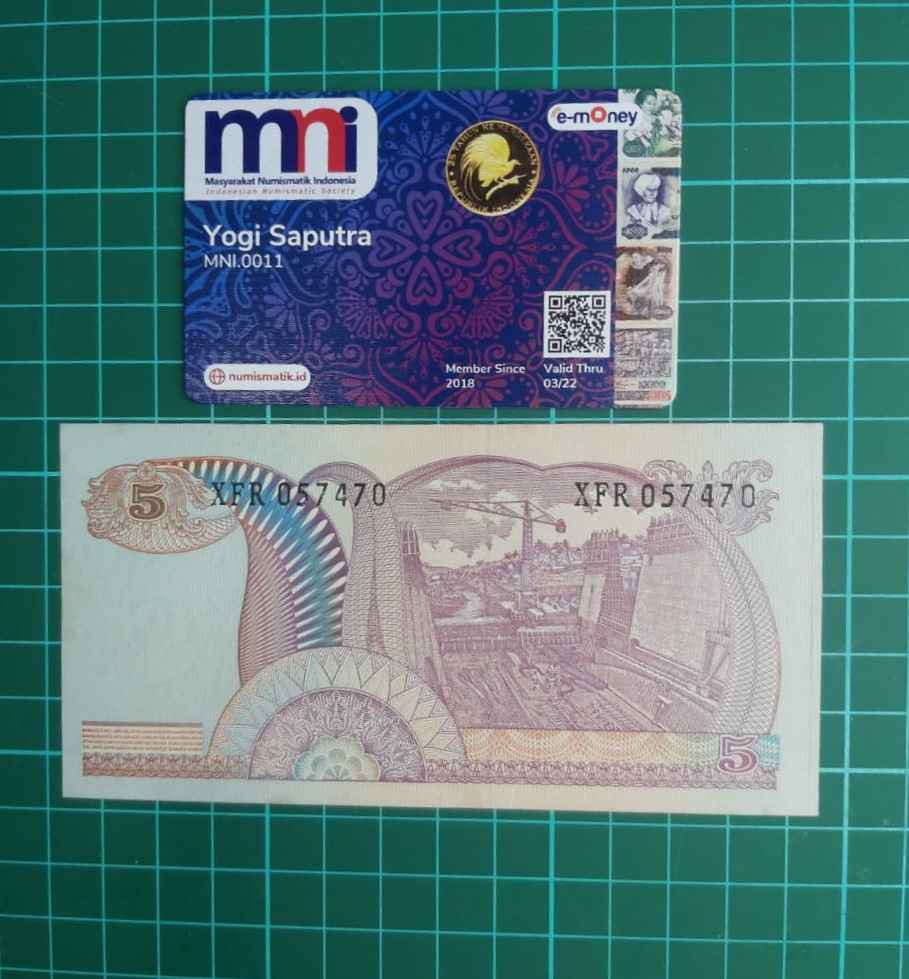 Nama barang : Uang Indonesia Rp 5 Th 1968 XF+/AU