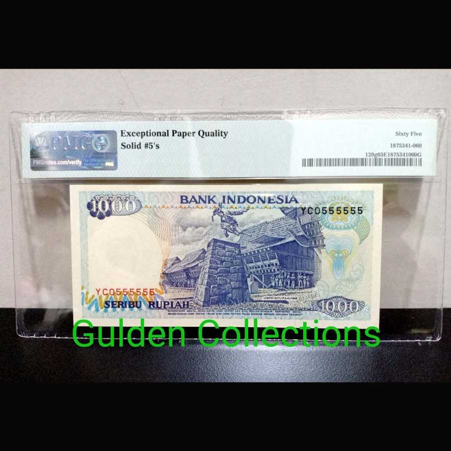 Uang Kuno 1000 Rupiah Lompat Batu 1992 Solid 555555 UNC PMG 65 epq