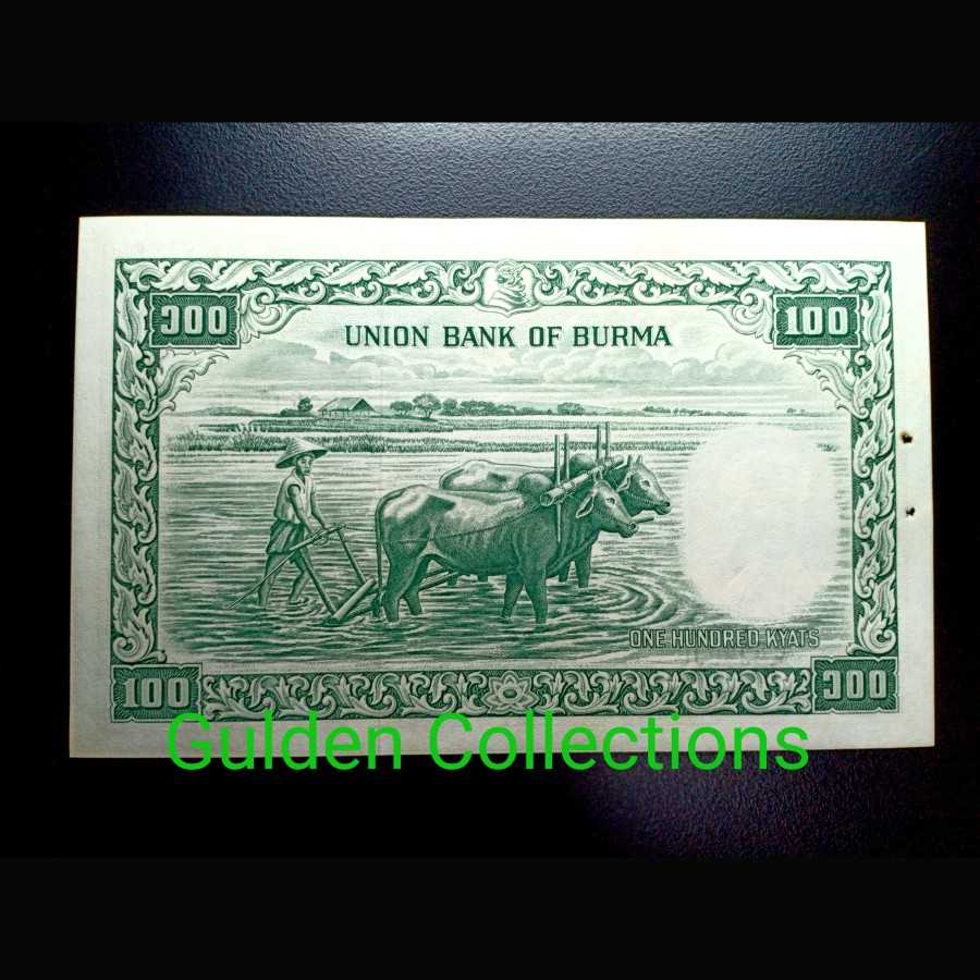 Uang Kuno Burma 100 Kyats 1958 UNC Foxing