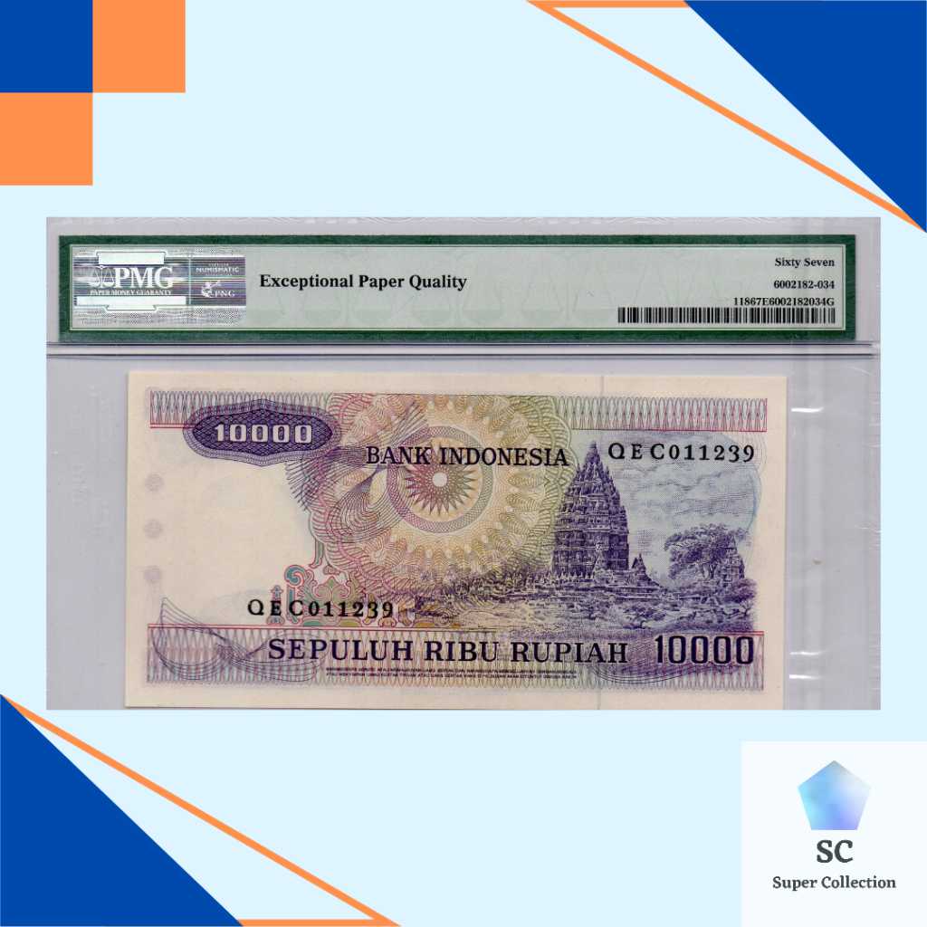 Nama barang : Uang Kuno Indonesia 10000 Rupiah Gamelan 1979 PMG 67