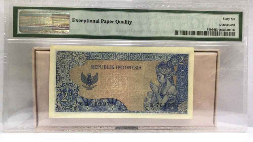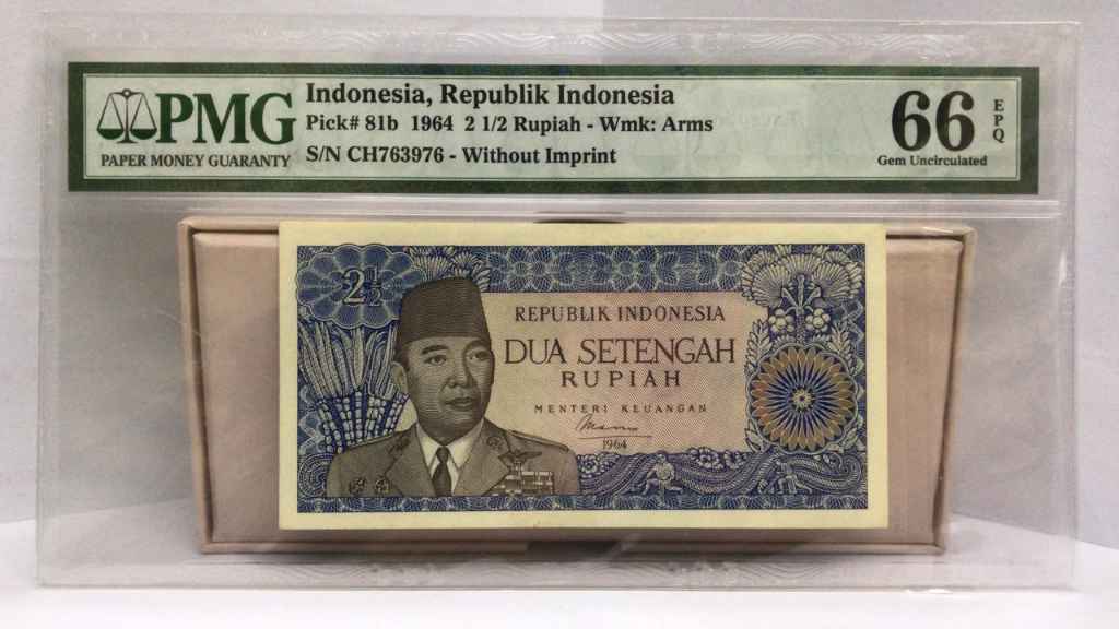 Nama barang : Uang Kuno Indonesia 2 1/2 Rupiah Ir. Soekarno PMG 66