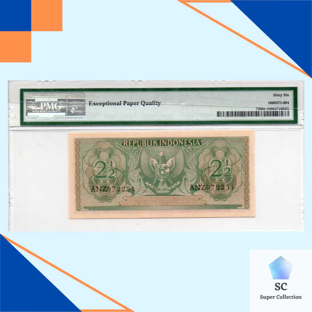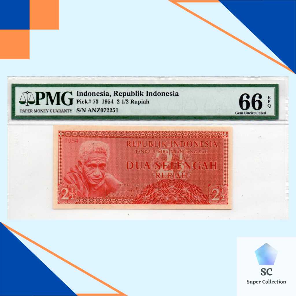 Nama barang : Uang Kuno Indonesia 2 1/2 Rupiah Seri Suku Bangsa 1954 PMG 66