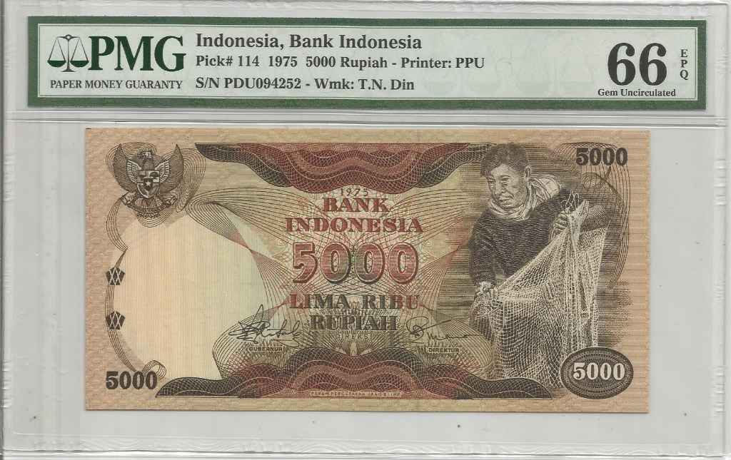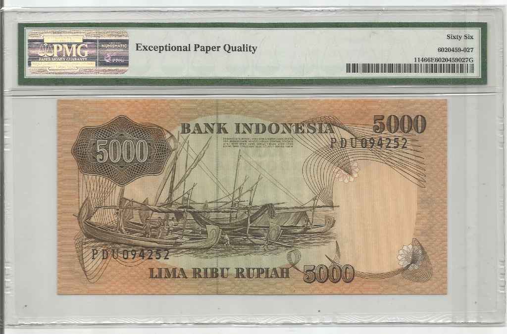 Nama barang : Uang Kuno Indonesia 5000 Rupiah Nelayan PMG 66