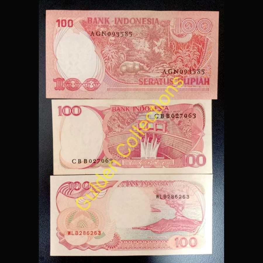 Uang Kuno Paket 100 Rupiah 3 pcs 1992 1984 1977 UNC