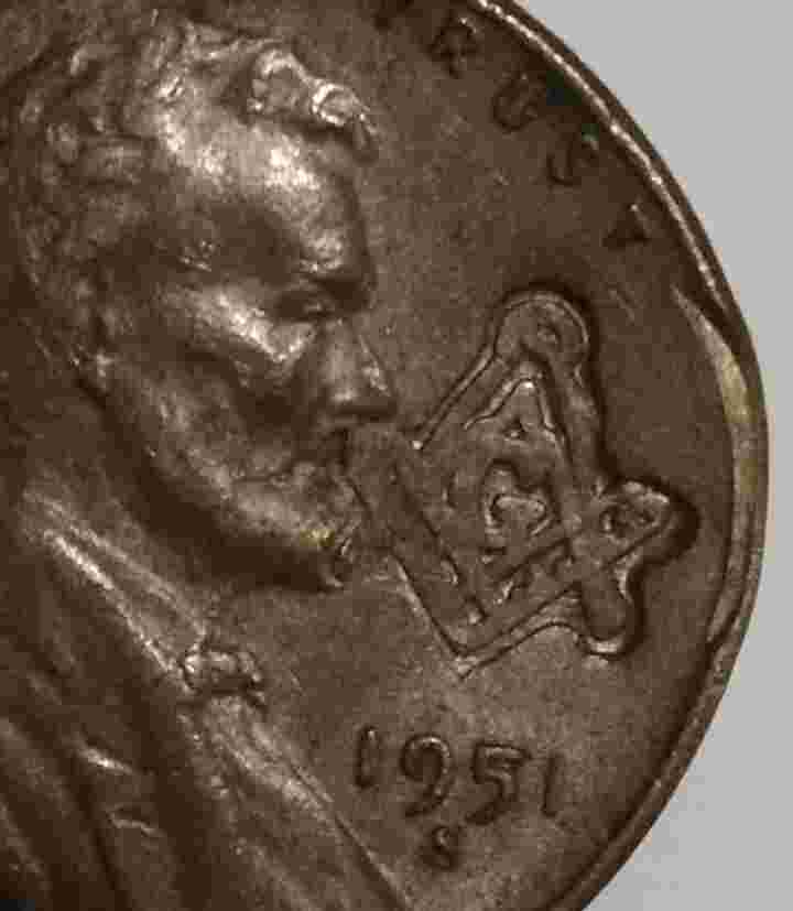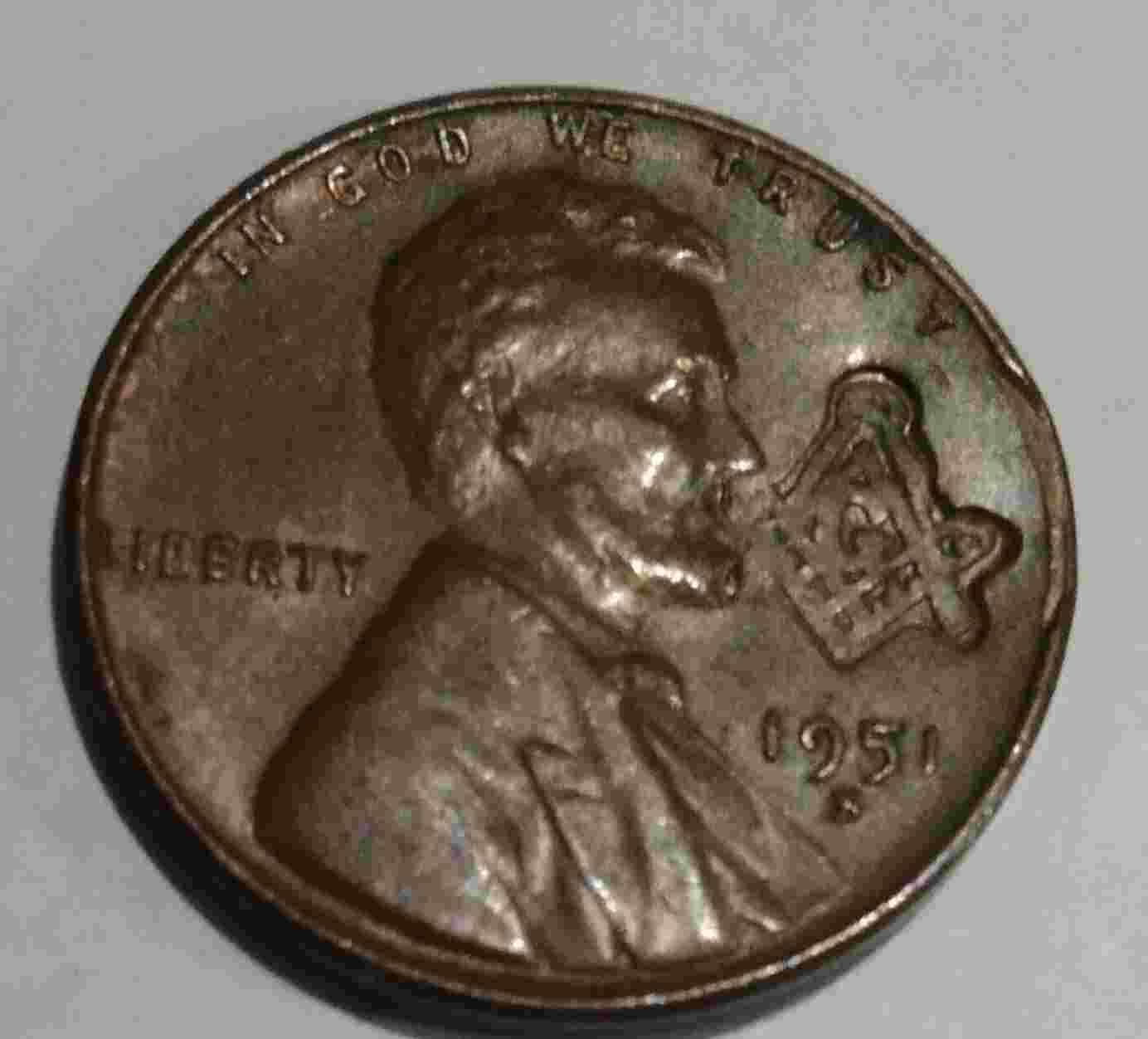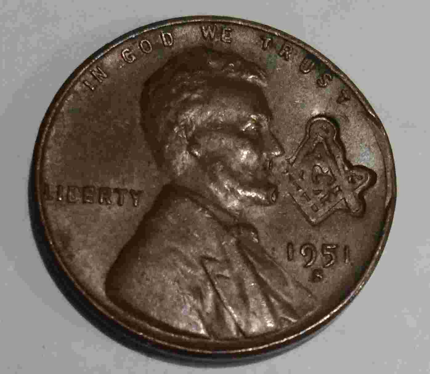 Uang koin Lincoln One Cent tahun 1951 s Gandum. Ada stempel atau cap.